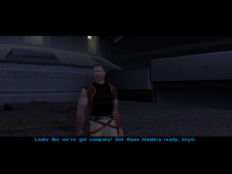 Canderous and, who i believe to be his men, walk towards the party. As they get closer one of his men says: