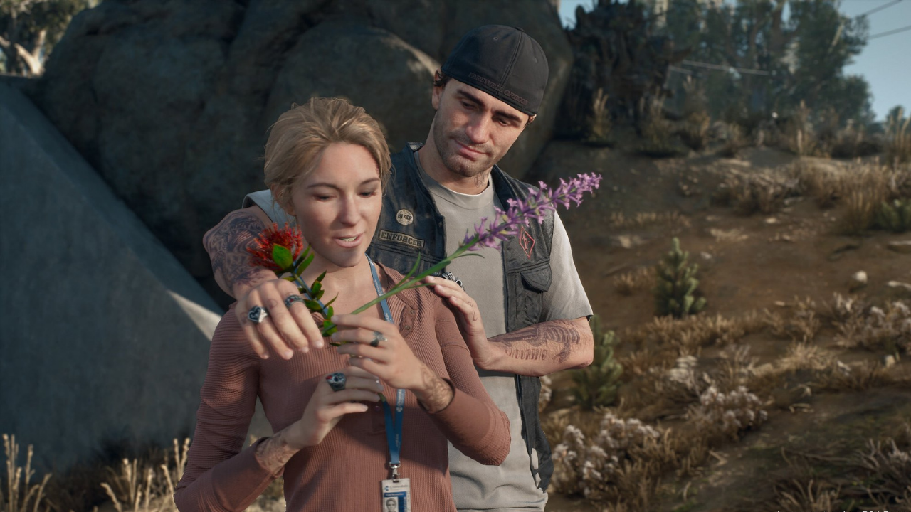 Days Gone is an action-adventure game developed by Bend Studio, released on April 26th, 2019 as an exclusive title for the Sony PlayStation 4. It's an open world game, played in a third person perspective, taking place in a post-apocalyptic setting. The game begins two years after a global pandemic has ravaged the world, but the story actually starts right when it's spreading and everyone is panicking. You play as Deacon St. John, an outlaw biker living in Oregon, who's a member of the local motorcycle club. As this disease begins to spread, turning people into violent, animalistic creatures, you try to escape to safety with your wife Sarah and your best friend Boozer.