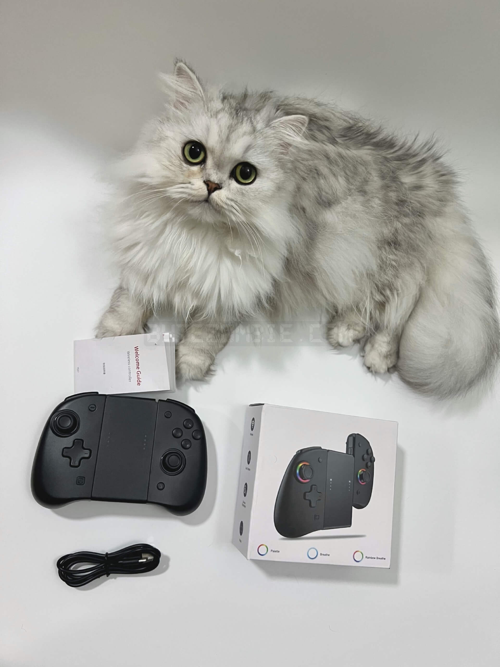 Neat and simple packaging houses the two Joy-Pads, Joy-Pad grip, USB-C cable and instruction manual. A quick run through the user guide with illustrated directions were easy enough and quite important if you want to know how to customize the NYXI Wireless Joy-pad. My cat seemed pretty interested in this controller so you get to see her posing with it before the user manual suffered an inevitable fate. Cats are not included with the controller!