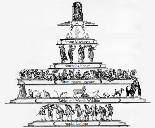 In the Gamer world is PC Master Race - Console Peasant. But in one point these two branches of Gaming come together and is the despise to Mobile Gamers.