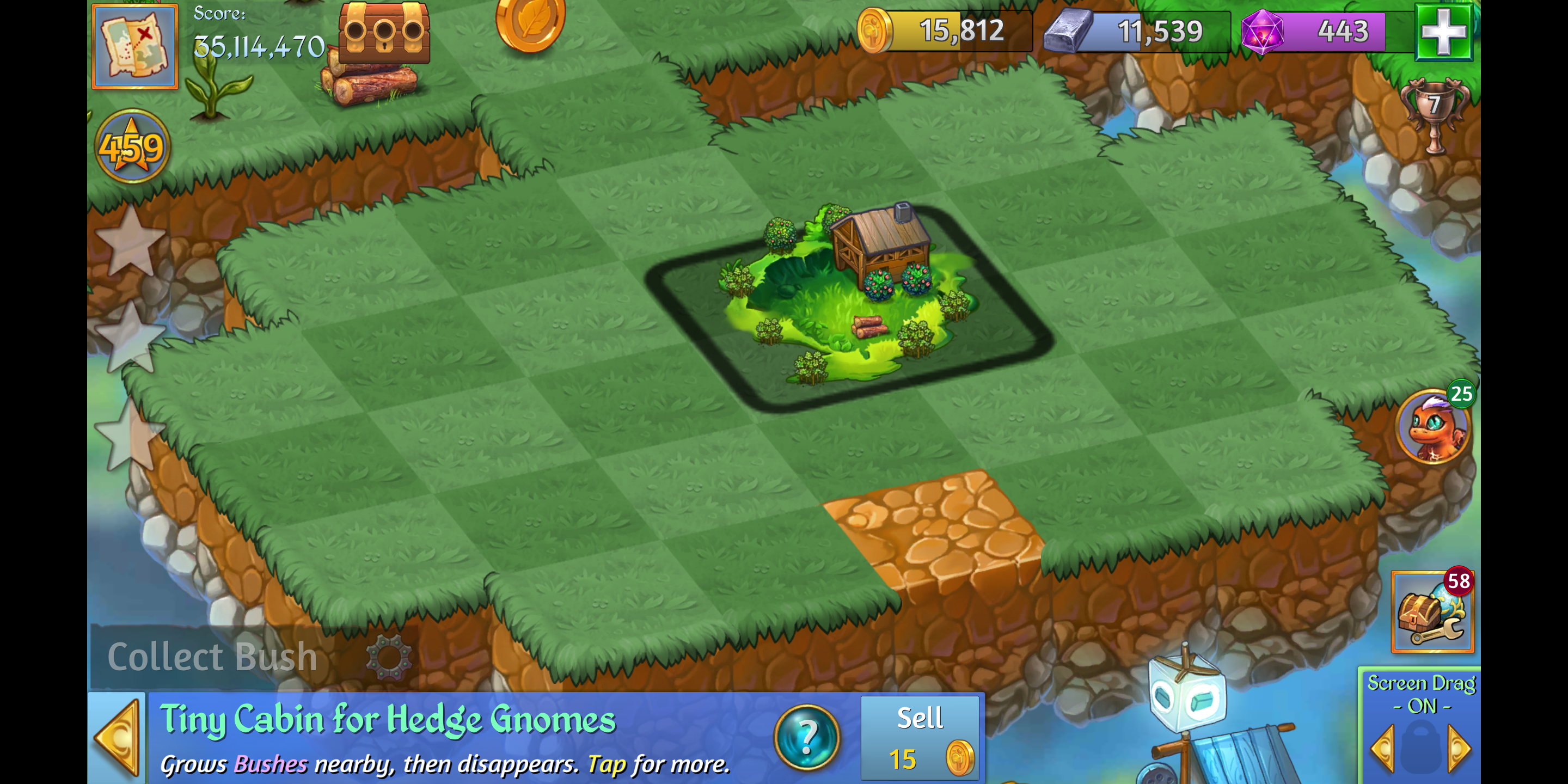 (If you tap the Tiny Cabin, you can get the Shrub Sprouts. )