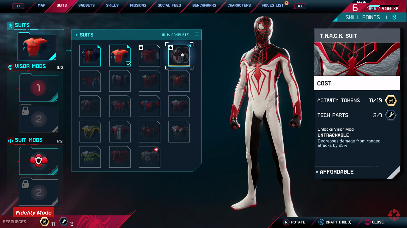 Add in Miles cloaking ability and suddenly any combat scenario can be transformed, even temporarily, into a stealth section. Also, I'm psyched that insomniac actually addressed one of my larger gripes with the first game by making the various powers Miles can unlock with his new awesome. Lineup of suits or for his visor, more meaningful and interesting. I found myself switching them up quite often, depending on the situation. Not every power-up has gotten the same love in my playthrough, but I kept wanting to test them out and try them in new scenarios. Another big improvement is that side missions and environmental objectives are actually consistently fun and rewarding. I loved marvel spider-man, but the way it was padded out with required crime battle, quotas, and Ubisoft, like radio towers, made the hunt for upgrade tokens and to 100