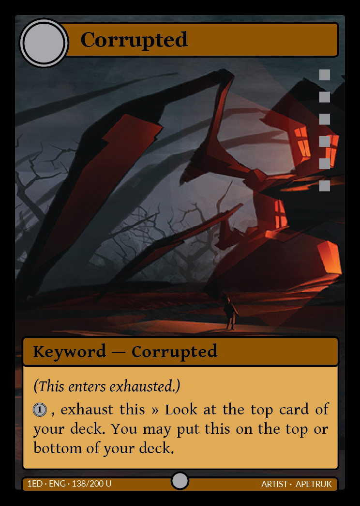 This is the first Keyword on CotD. A Keyword is a card that can only be played as an Aether. This is similar to a nonbasic land in Magic: The Gathering