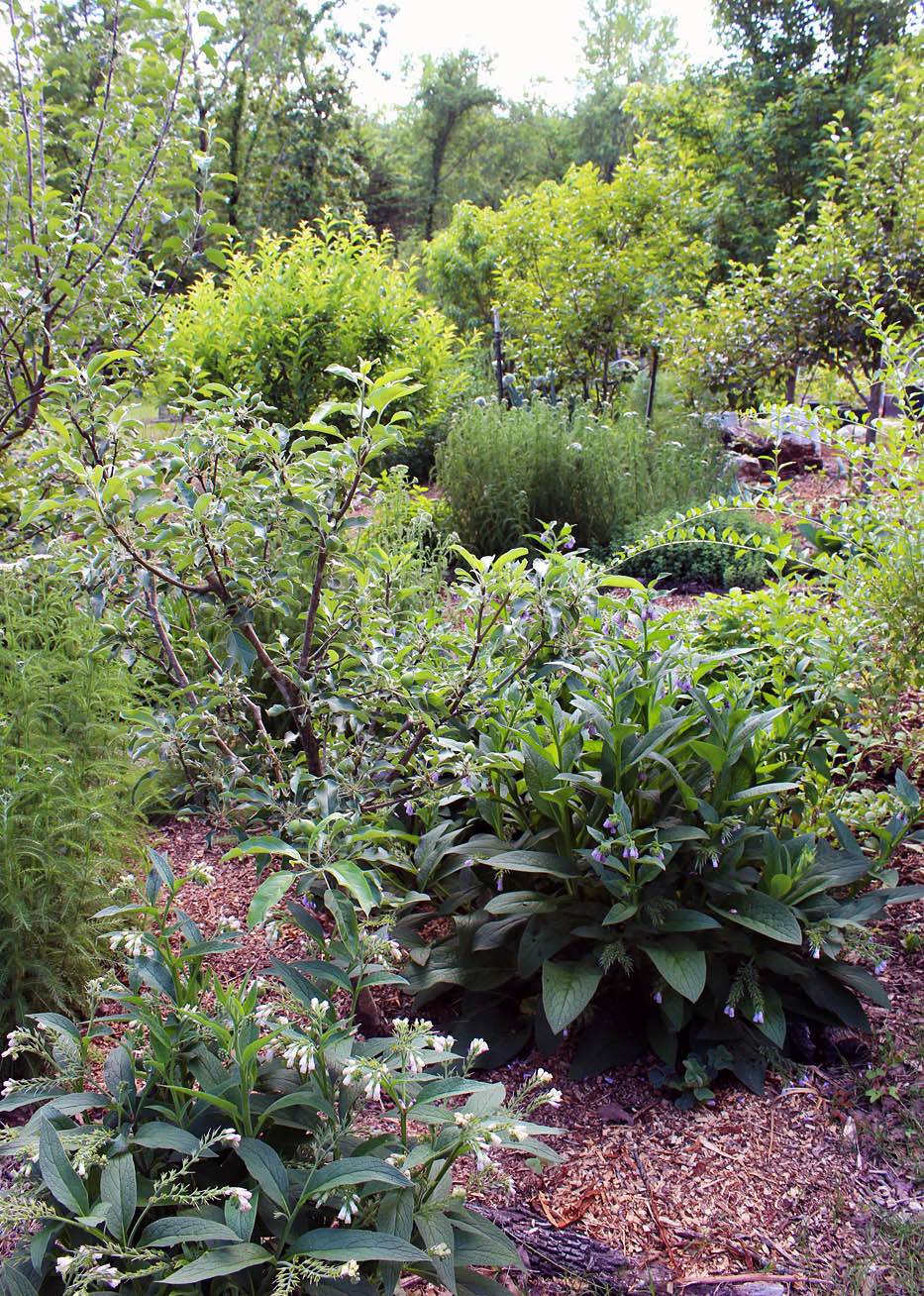 My organic food forest keeps me happy when I am down. I follow the permaculture principle and it keeps getting better each year. Here are a few photos of the food forest in May.