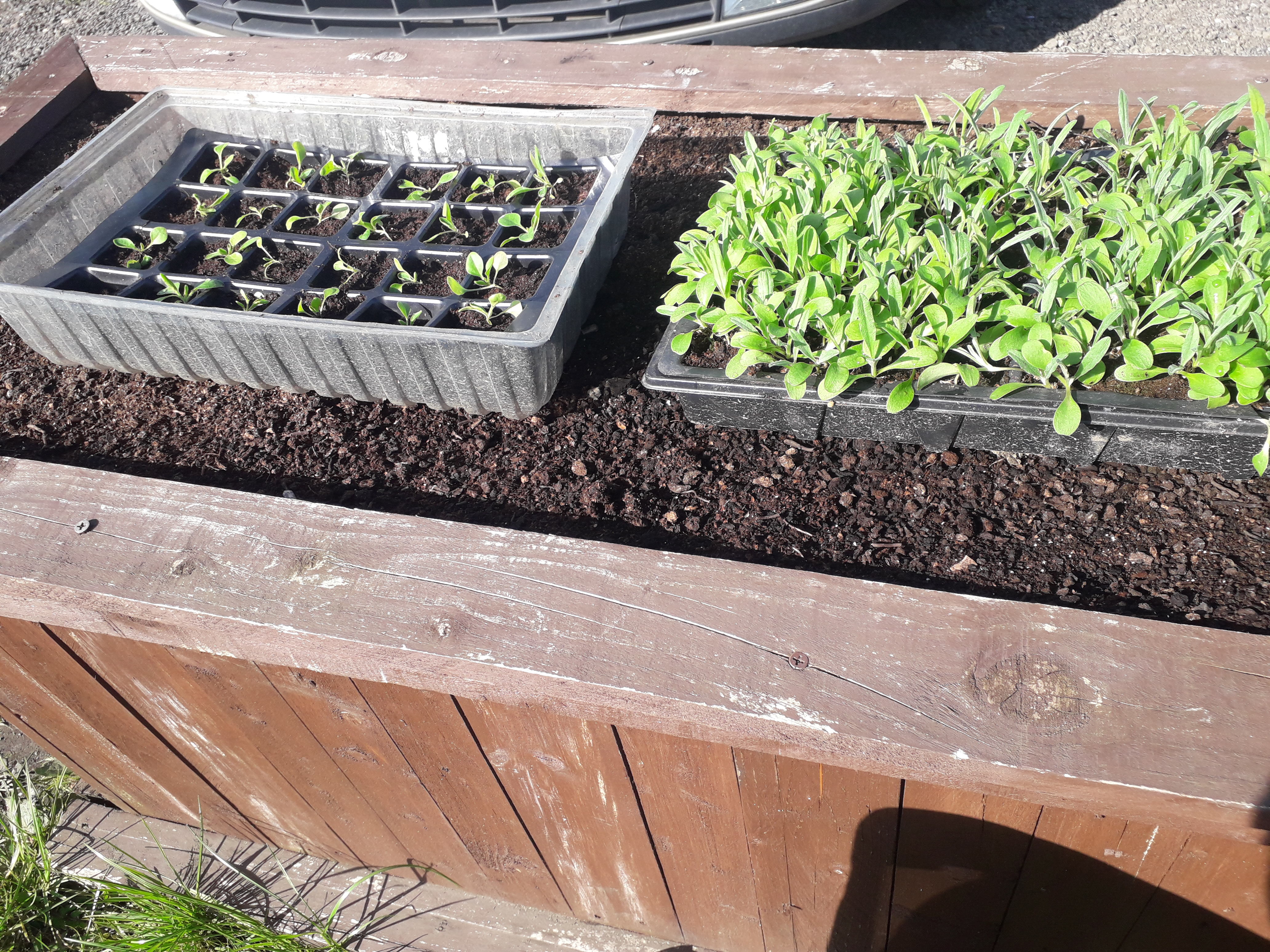 I have 1000's of petunias and cornflowers growing at the moment so I took the biggest ones I could find and added them to my planters, now only time will tell to see if they can handle the last few weeks of the cold.