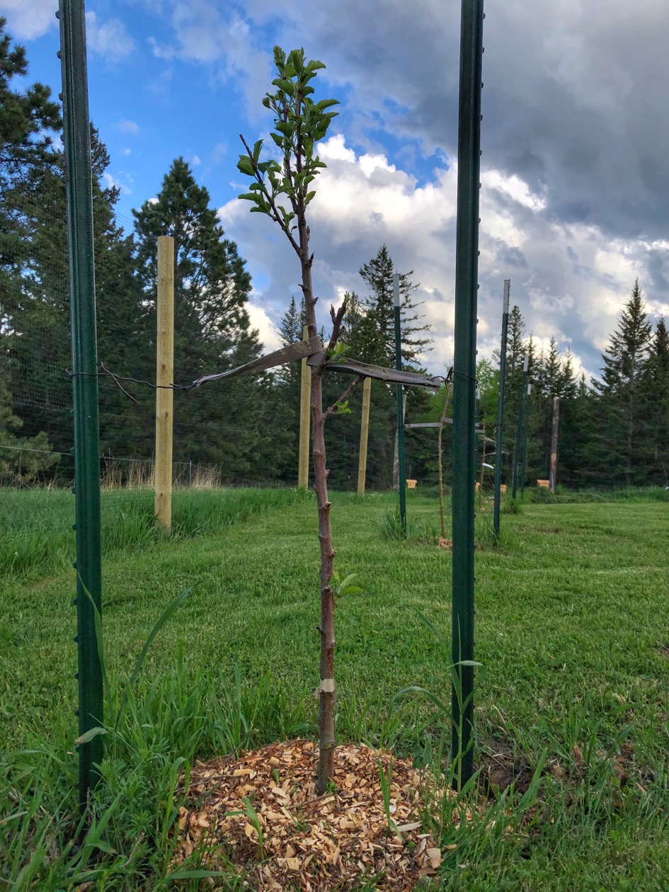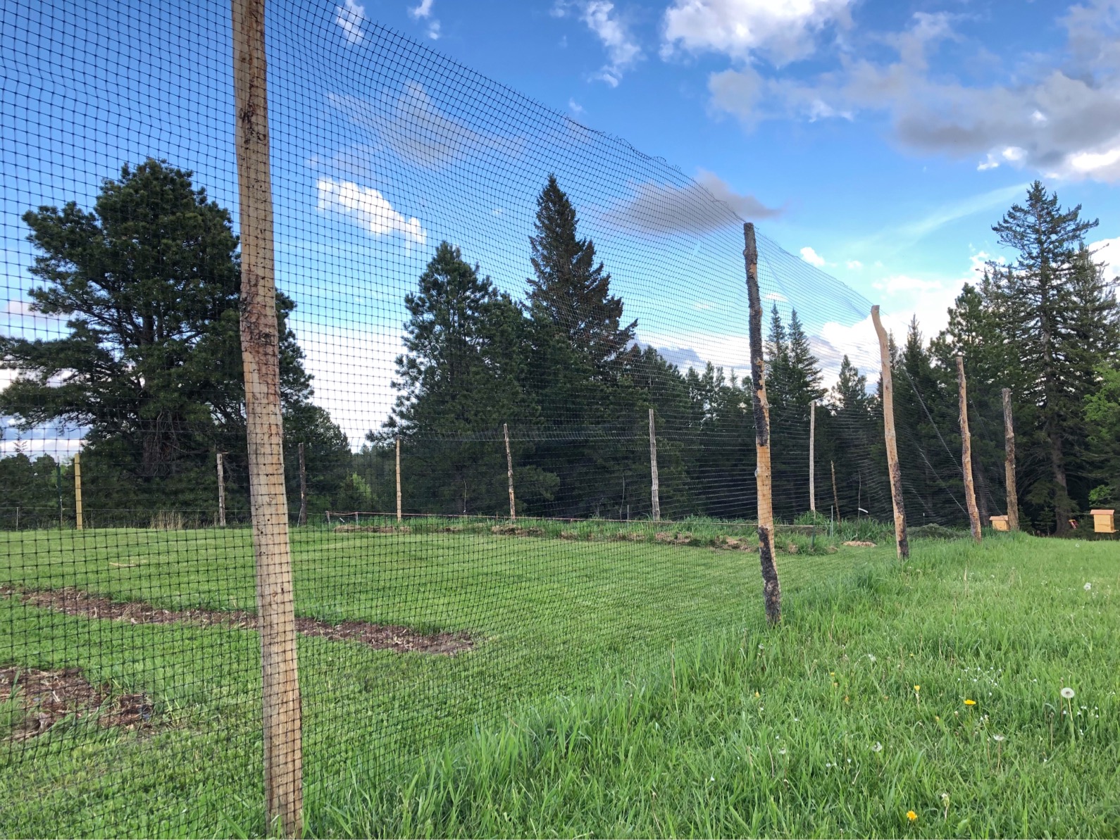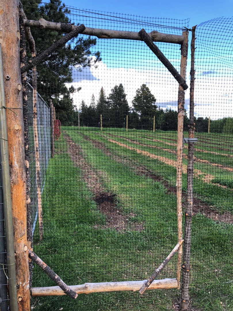 We just moved onto our homestead last spring, so we first had to set up our intended garden space. There are quite a few deer around and as much as we love them, we didn’t want them in the garden. So, we first started my gathering fallen timber from around the property and used them to build a perimeter fence. We wanted to make sure that we had plenty of room to add in additional fruit trees without having to extend, so we settled on a 100ft x 100ft size. We do have some plans for something a bit more permanent in the future, but for now this netting works perfectly. It keeps the deer out and allows us to remove it when needed as well.