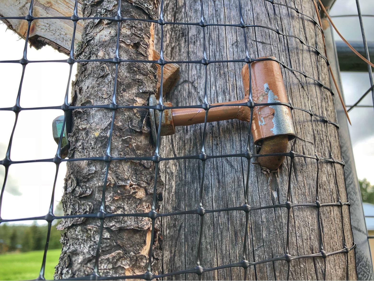 And we used an old bolt and some metal conduit to fabricate some hinges for the gate.