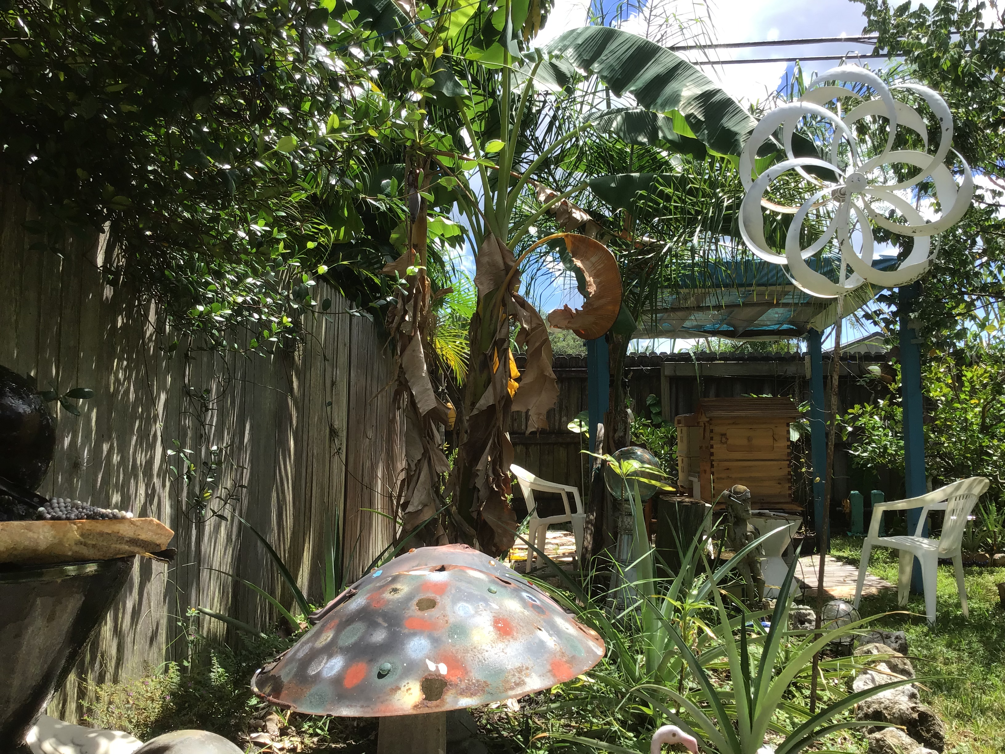 I also noticed that the pineapple plant that was growing nearest to the bananas produced the largest fruit this year.