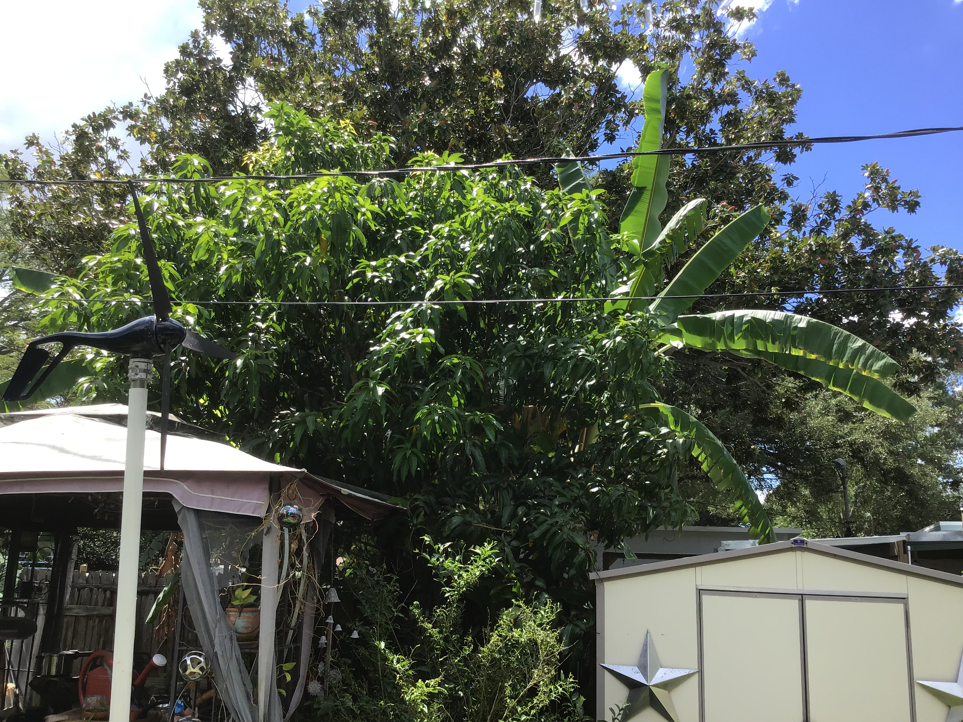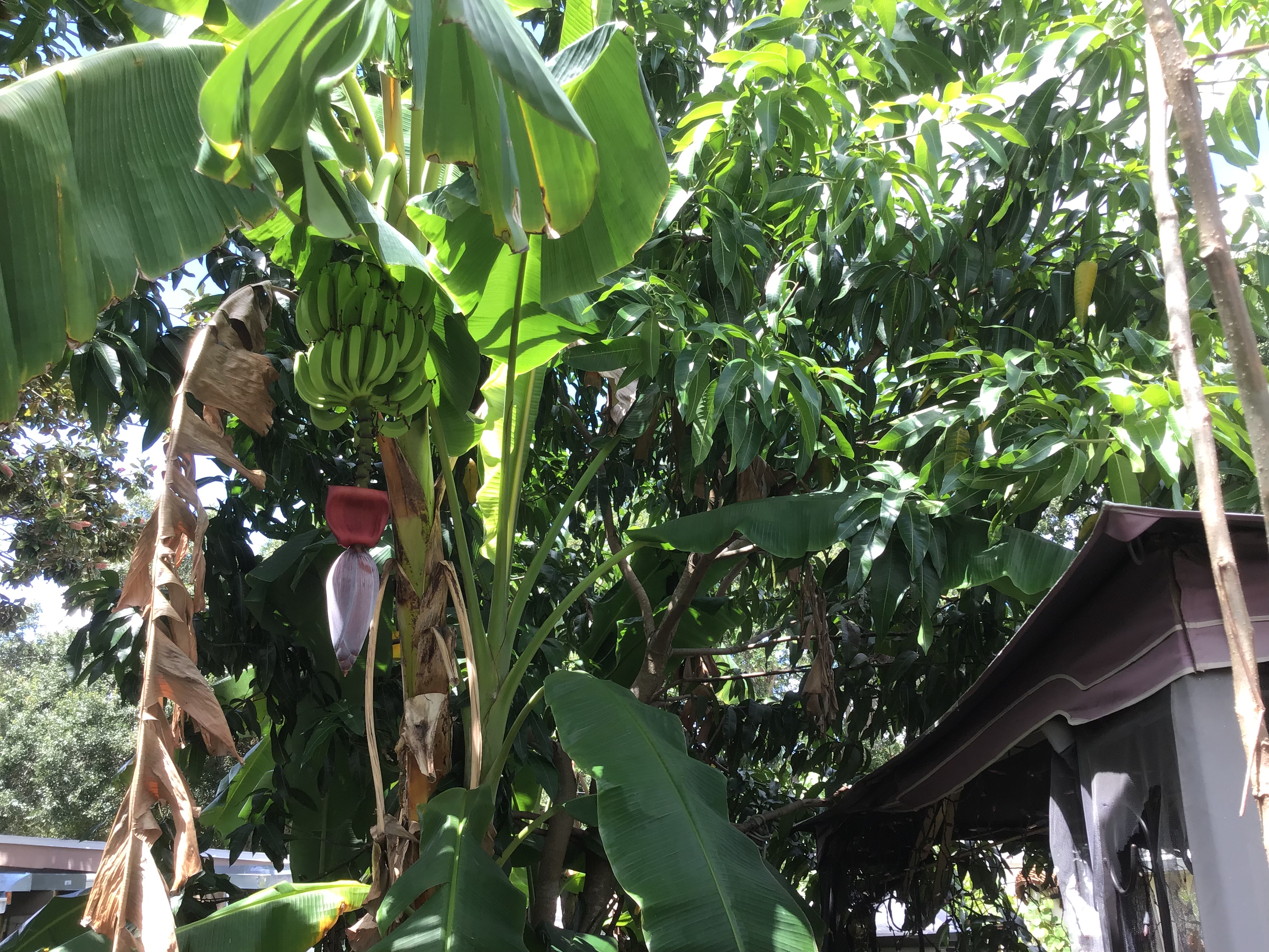 This got me to thinking. Could the bananas have anything to do with the rate of growth of the tree? I certainly noticed that the bananas didn’t produce any fruit after I put in the mango. At least they didn’t till this year.