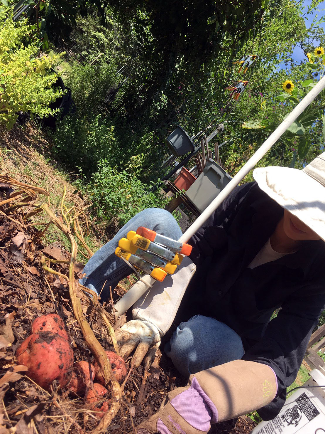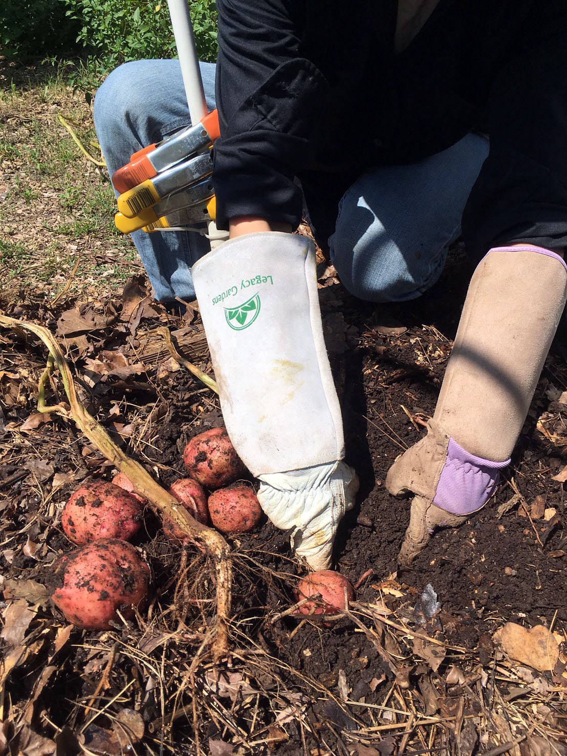 I no longer harvest potatoes unless I have these long, awesome gloves. We have a lot of fire ants around our property. We treat them with natural stuff but they just move to a different location instead of dying and moving on. After being bitten by several fire ants while harvesting potatoes, I swear these gloves are must haves when growing and maintaining a food forest.