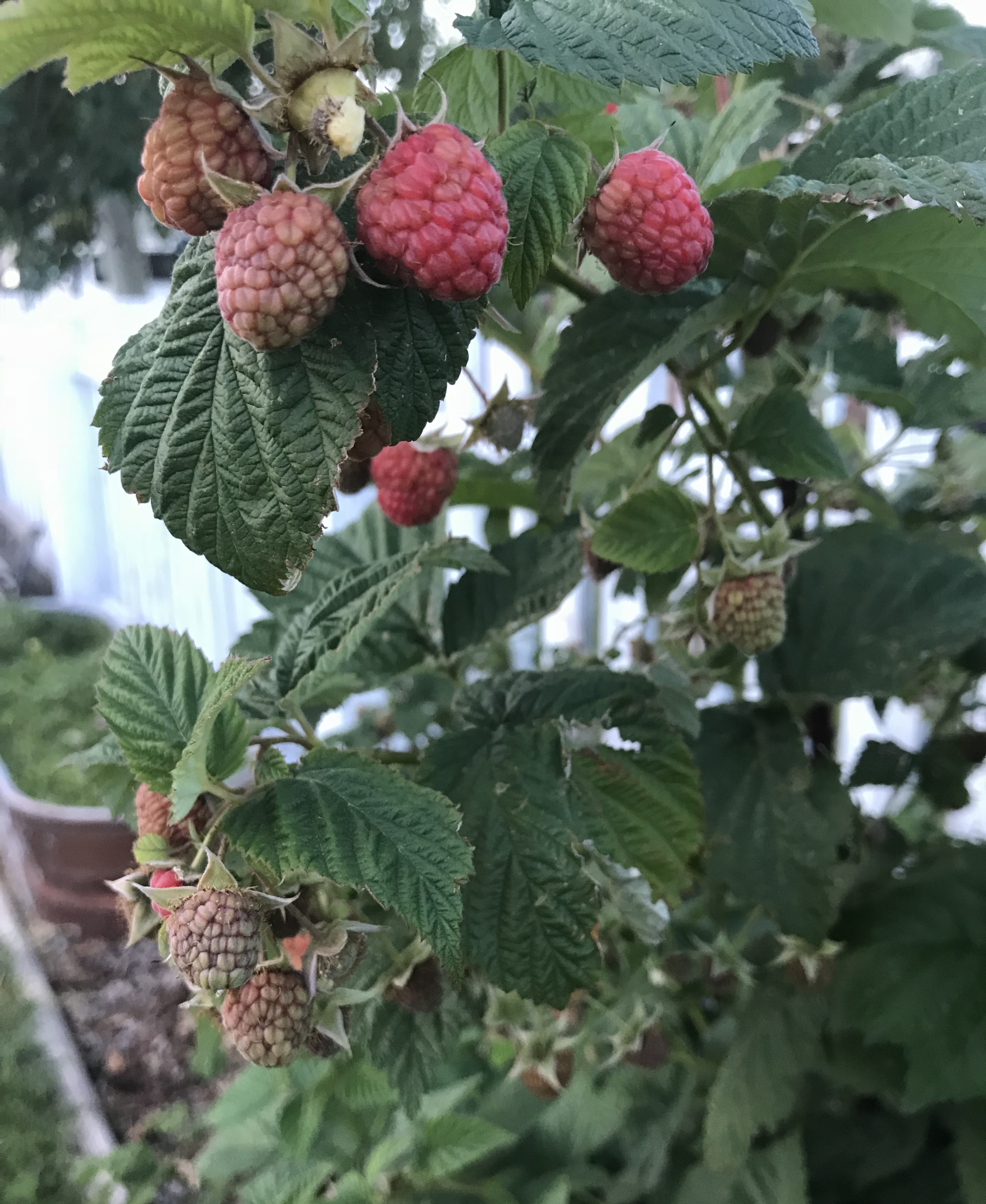 Last time I showed my raspberries & apple tree they were mere flowers... here they are full of fruit. Thank you pollinators!