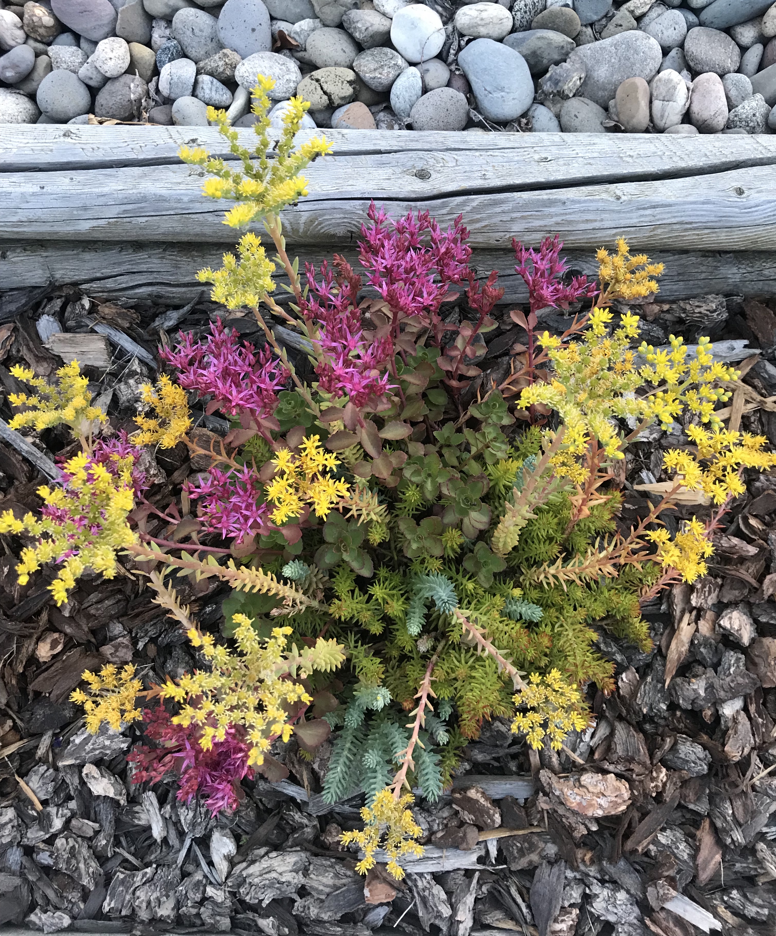 This Rooftop Sedum mix is one of my favorite plants in my yard! Such neat variety of texture and colors. Here it is blooming!
