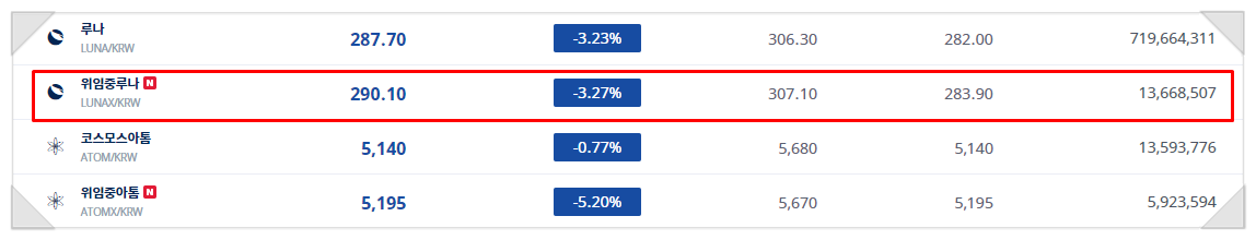※ 반대로 루나 스테이킹을 하시는 분들은 위임중루나를 사면 별도의 조치 없이 스테이킹에 참여 됩니다.