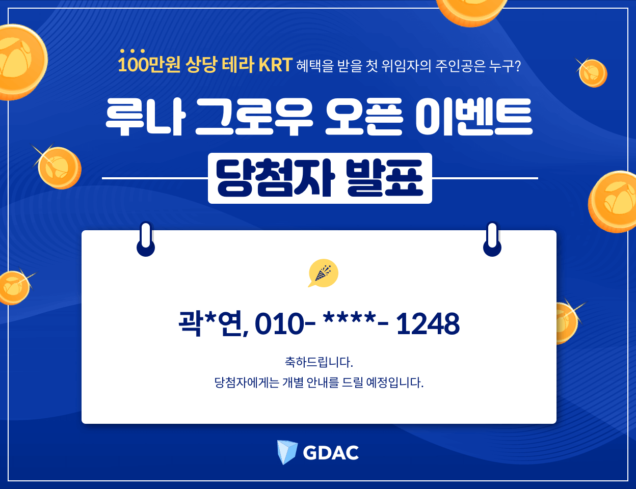 바로 어제죠? 지닥(Gdac)거래소에서 루나(Luna) 그로우 이벤트를 진행했는데요.