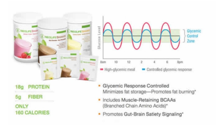 Primarily driven by years of over-consuming highly processed foods and beverages together with sed entry lifestyle, our bodies glucose regulation system becomes overworked and overwhelmed. The ability to maintain blood glucose with normal range has been lost. As a leader in whole-food nutrition and supplement, Neolife is known for its understanding of the importance of maintaining a steady blood glucose level, and has developed nutritionally balanced weight management products such as NeolifeShake which uses the principle of "glycemic roller coaster" and can provide considerable support in efforts to keep within the normal physiological range of blood sugar level throughout the day - ensuring steady energy levels for active living.