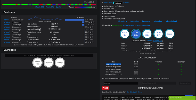 The first thing we need is a mining pool. You can solo mine, but the payouts could take months depending on how powerful your mining rig is, and the mining pools usually charge a very small fee (1% or less). Using a pool will allow you to receive consistent payouts, multiple times per day. For Haven, there are a few pools. I chose to mine at https://xhv.fairpool.xyz/