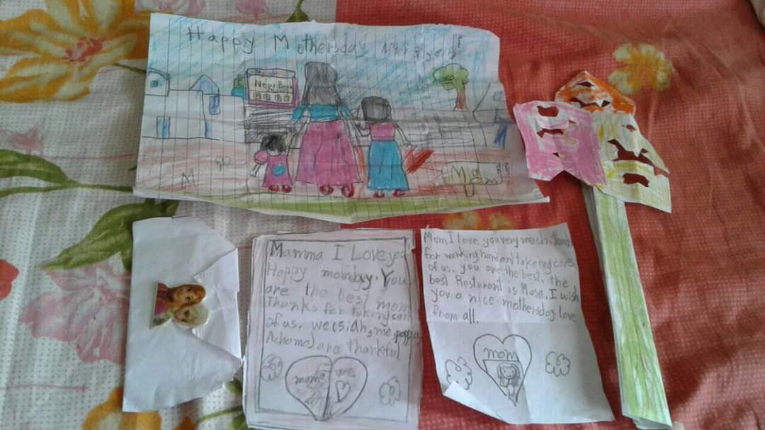It feels great when someone do something for you . Today I am the luckiest one , my 7 years old daughter make the day for me. She awake me up in the morning by her wishing kiss " HAPPY MOTHERS DAY MOM " .Covers my eyes with a scarf ,take me to her room and presents me balloons, self made flowers , a picture where I am with my two daughters , and two letters.I am really very much happy . May Allah bless you mamma and keep you always hale and healthy. I never wish my mother this way today I also wanna say " I LOVE YOU MA " and happy mother's day to all the mothers.