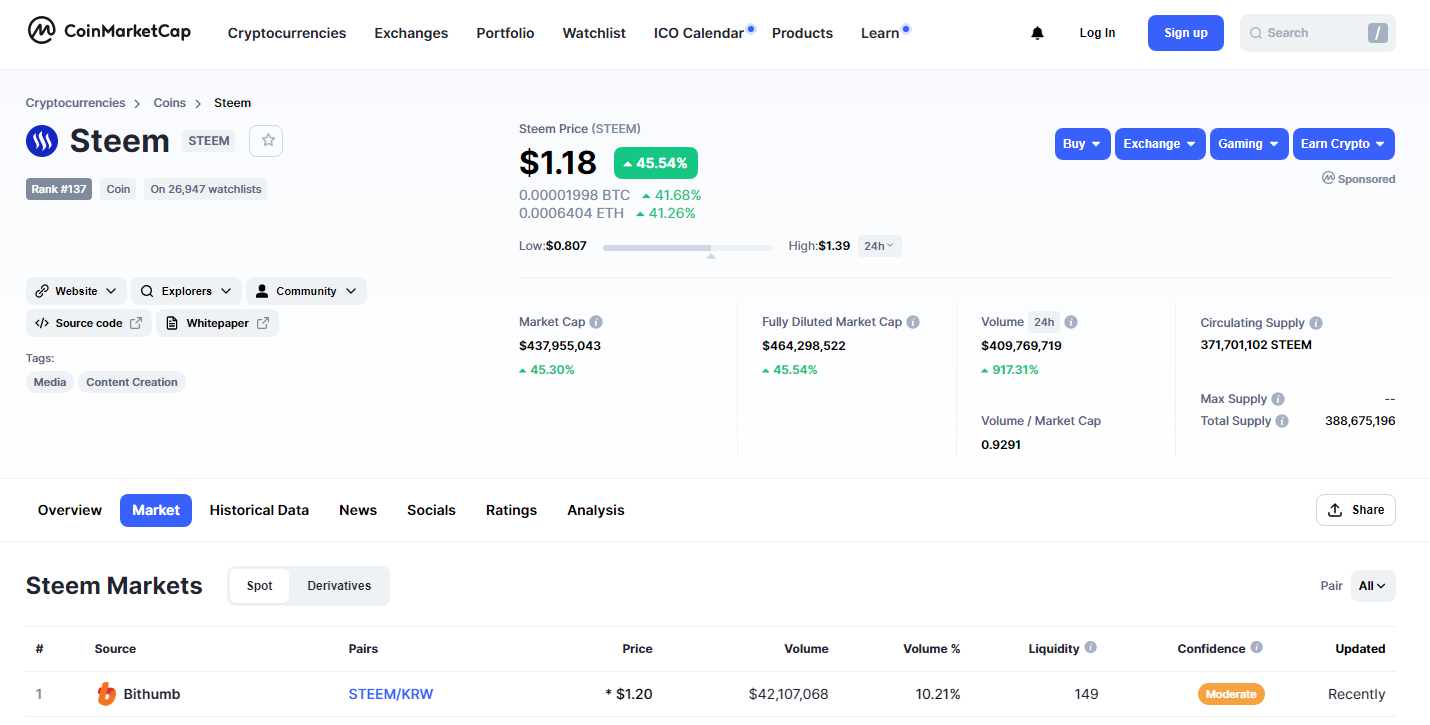(Source: https://coinmarketcap.com/currencies/steem/markets/)