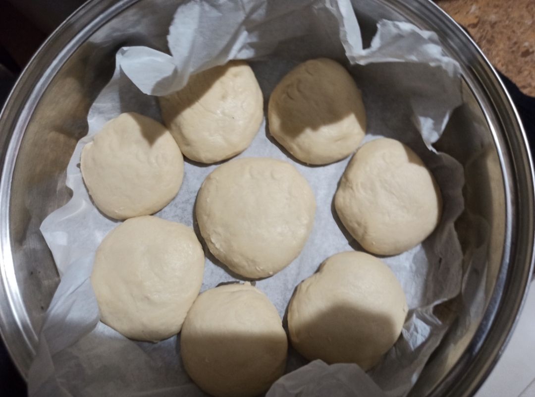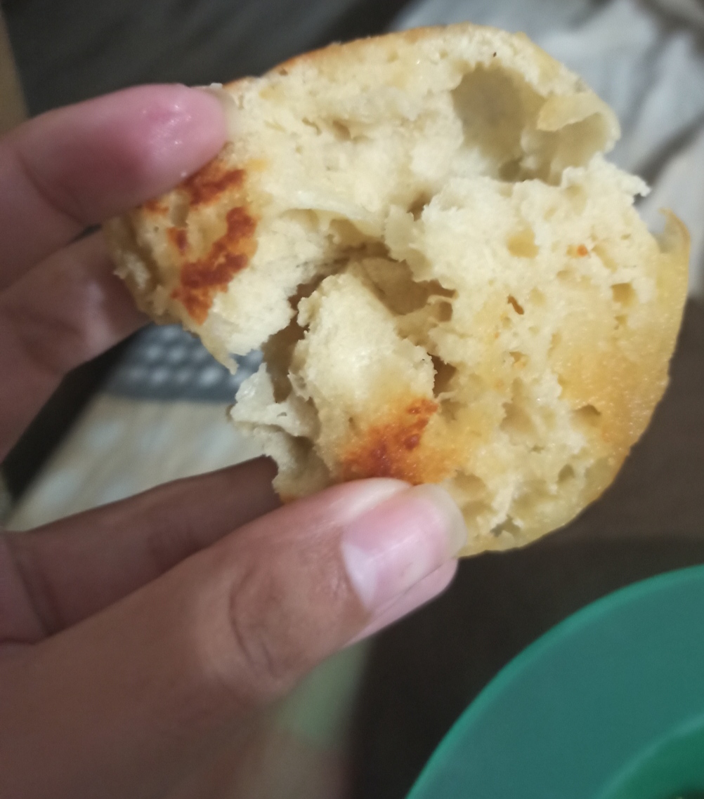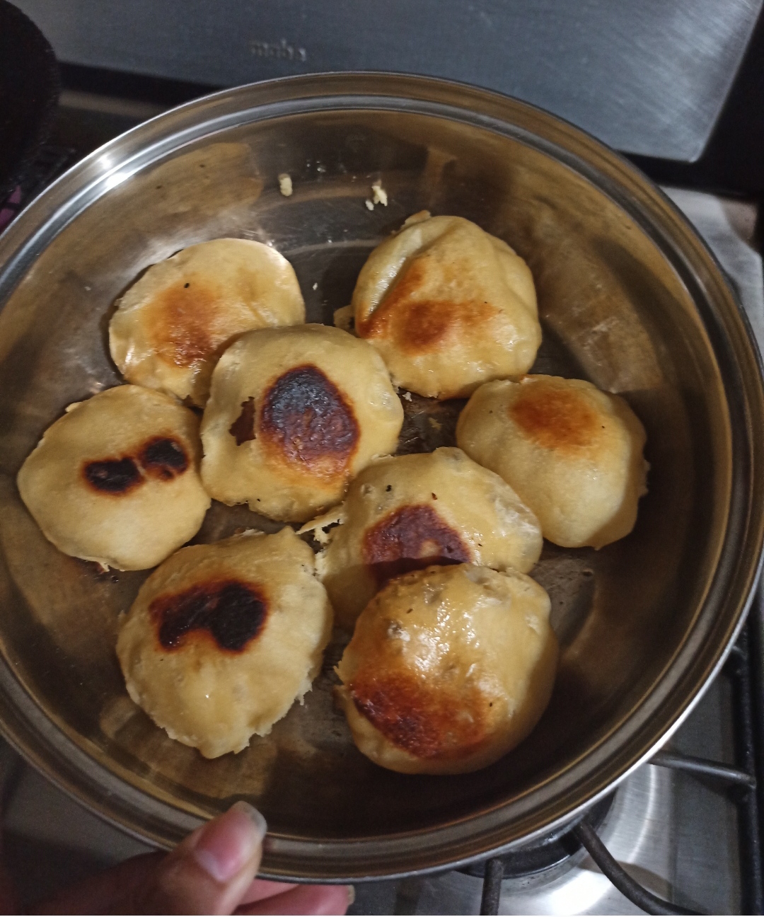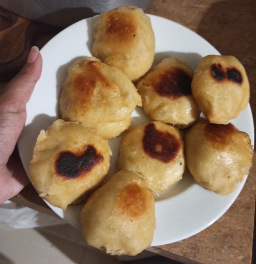 I check the bread and they were a little burnt and I notice that they were filling with air inside, I check the flame and I realize my mistake and I lower the flame to the level of being almost ready to turn off the kitchen.