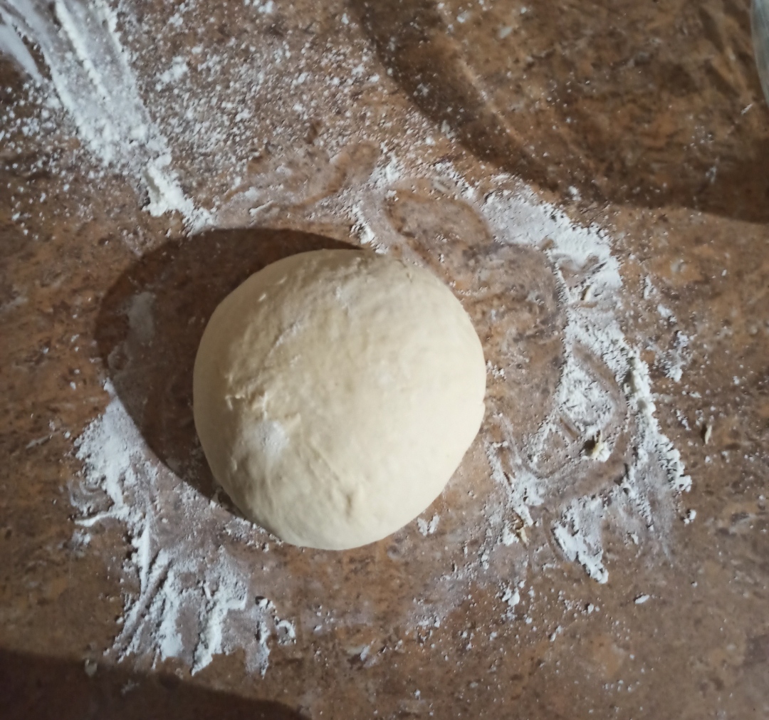 Now we proceed to spread a little flour on our work table and put flour on the fingertips, only this is done to remove the dough from the bowl, we will place it where our flour is and with our previously floured fingers we will give it a round shape to our dough.