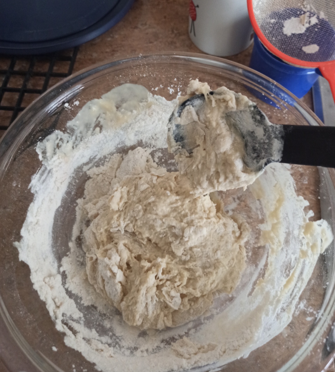 We continue adding the flour and mixing.