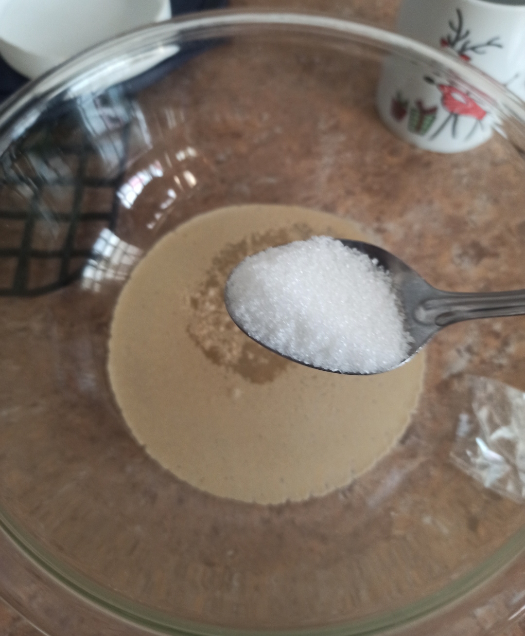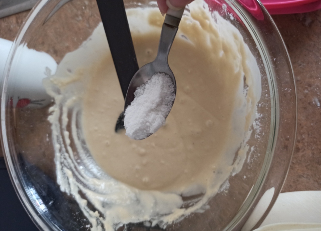 Once everything is integrated, we proceed to add the teaspoon of salt, this is the ideal time to add the salt because if we do it before it is possible that it kills our yeast which prevents us from growing our bread.