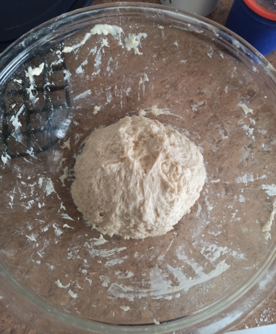 It should be noted that this is a sticky dough, so its consistency must be like this, it is totally normal. Remember this is a recipe for bread without kneading.