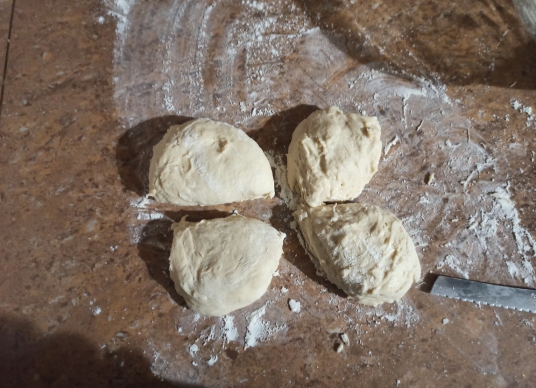 Once our dough is ready, we will proceed to divide it into 8 pieces, you can do this with a spatula and if you do not have it like me, use a knife, I recommend making a clean cut, we will sink our knife into the dough firmly and We will slide flush to make a single cut. We are not going to saw the dough, we are going to cut by sliding the knife once.