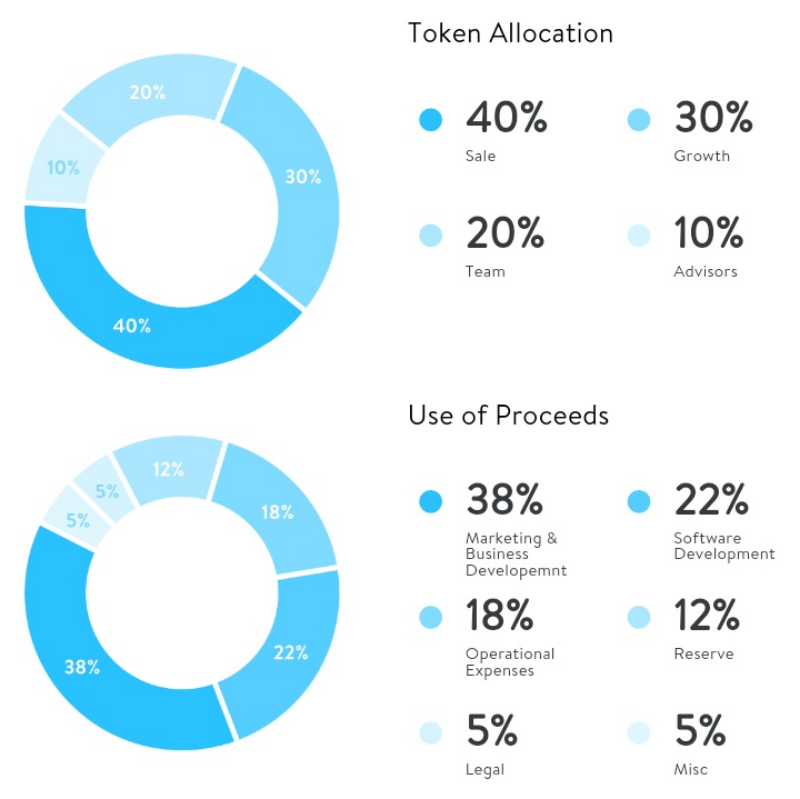 Genel olarak baktığımızda satış için ayrılan token miktarı %40 oranına denk gelmekte. Büyüme ve geliştirme için kullanılacak token miktarı ise %30. Takıma ayrılan token miktarı %20 gibi oldukça düşük bir miktar düşünülmüş. Danışmanlar için ise ayrılan token miktarı %10 gibi en düşük miktar belirlenmiş. Kazancın nerelere harcanacağı da şeffaf bir biçimde gösterilmiş. %38 pazarlama ve iş gelişimine, %22 yazılımın geliştirilmesine, %18 operasyonel giderlere, %12 rezerve olarak tutulacak. %5'i yasal olarak kullanılacak giderlere, diğer %5 ise çeşitli yerlerde kullanılacağı öngörülmüş.