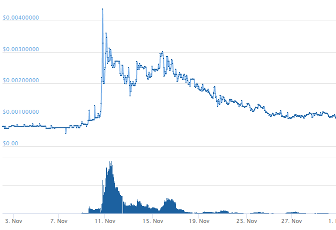 Though the markets are in shambles, $GENX has slowly been growing in marketcap and volume. During November, the price of $GENX grew from 8-10 satoshis to approximately 20-25 satoshis. There was a substantial influx of volume on TradeSatoshi early in November raising the price up to 75 satoshi, but has since then stabilized.