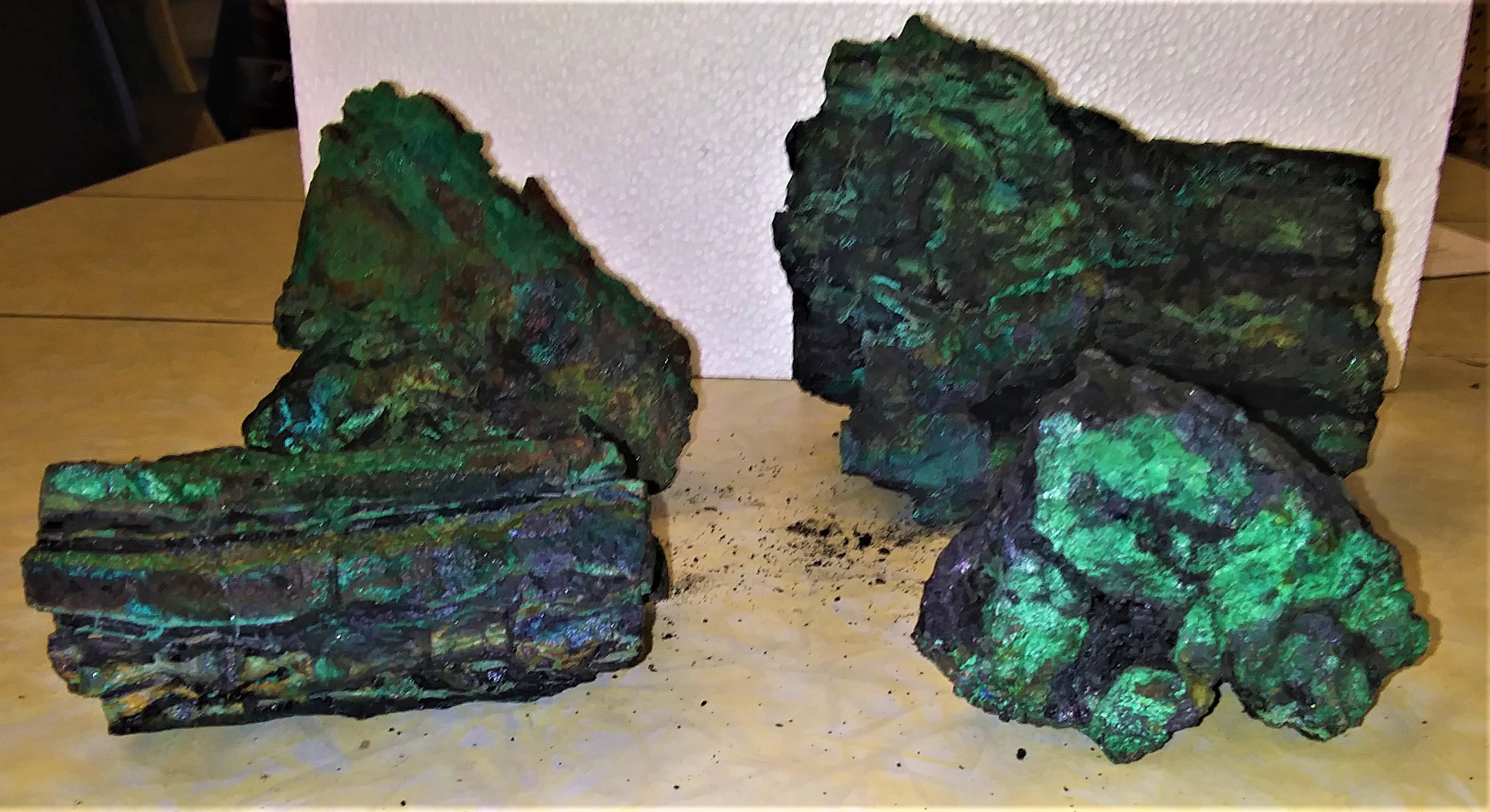 I have never made it a secret that green is not my favorite color. But when a gentleman brought in these pieces of copper petrified wood, they weren't leaving the store.