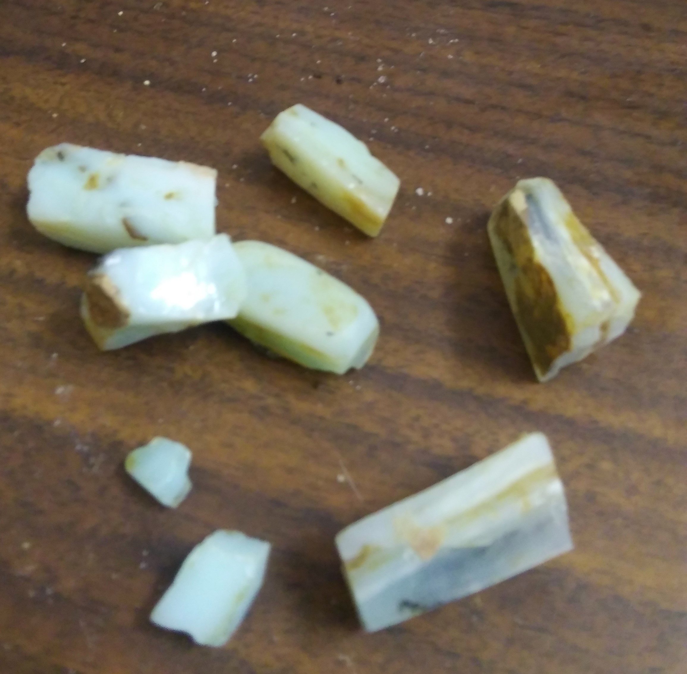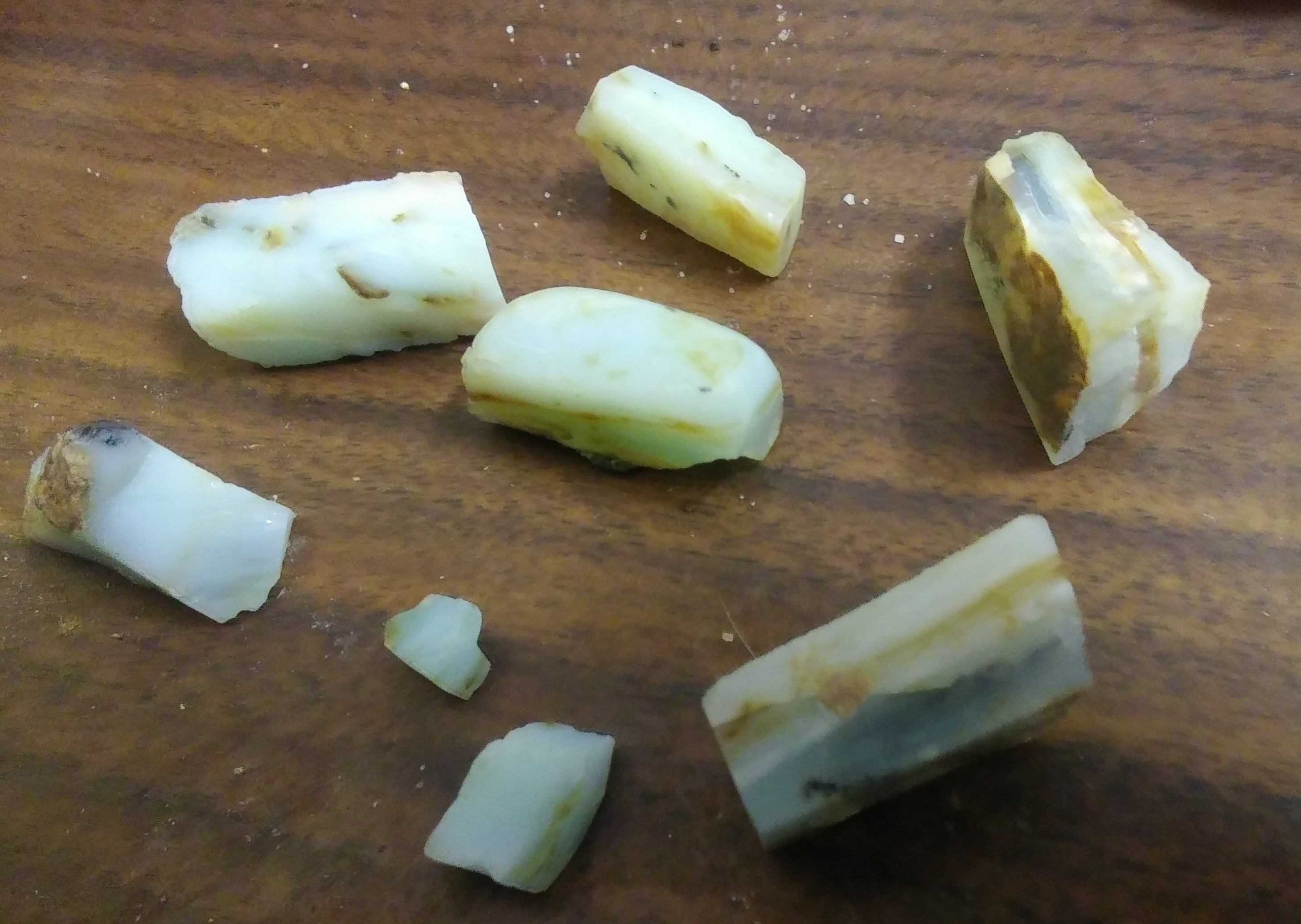 At first glance, I thought they were broken shards of slag glass. The shears are much shinier than any stone; even opal