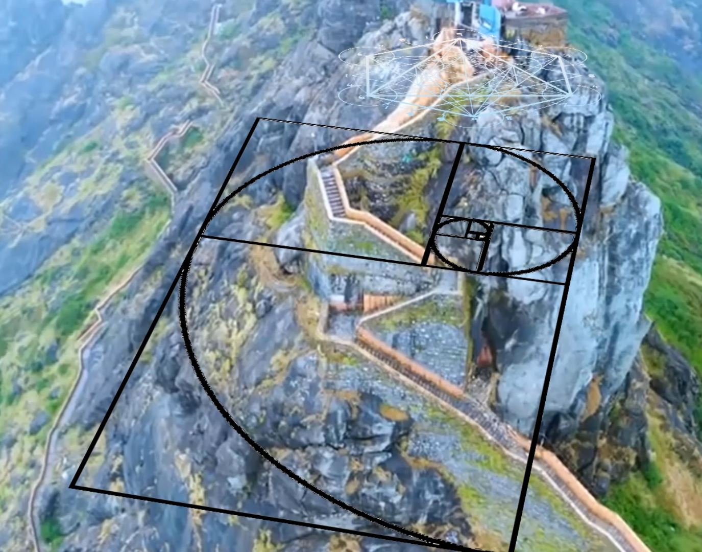 The formation itself is part of a larger structure surrounding the peak that spirals alike to a phi spiral: