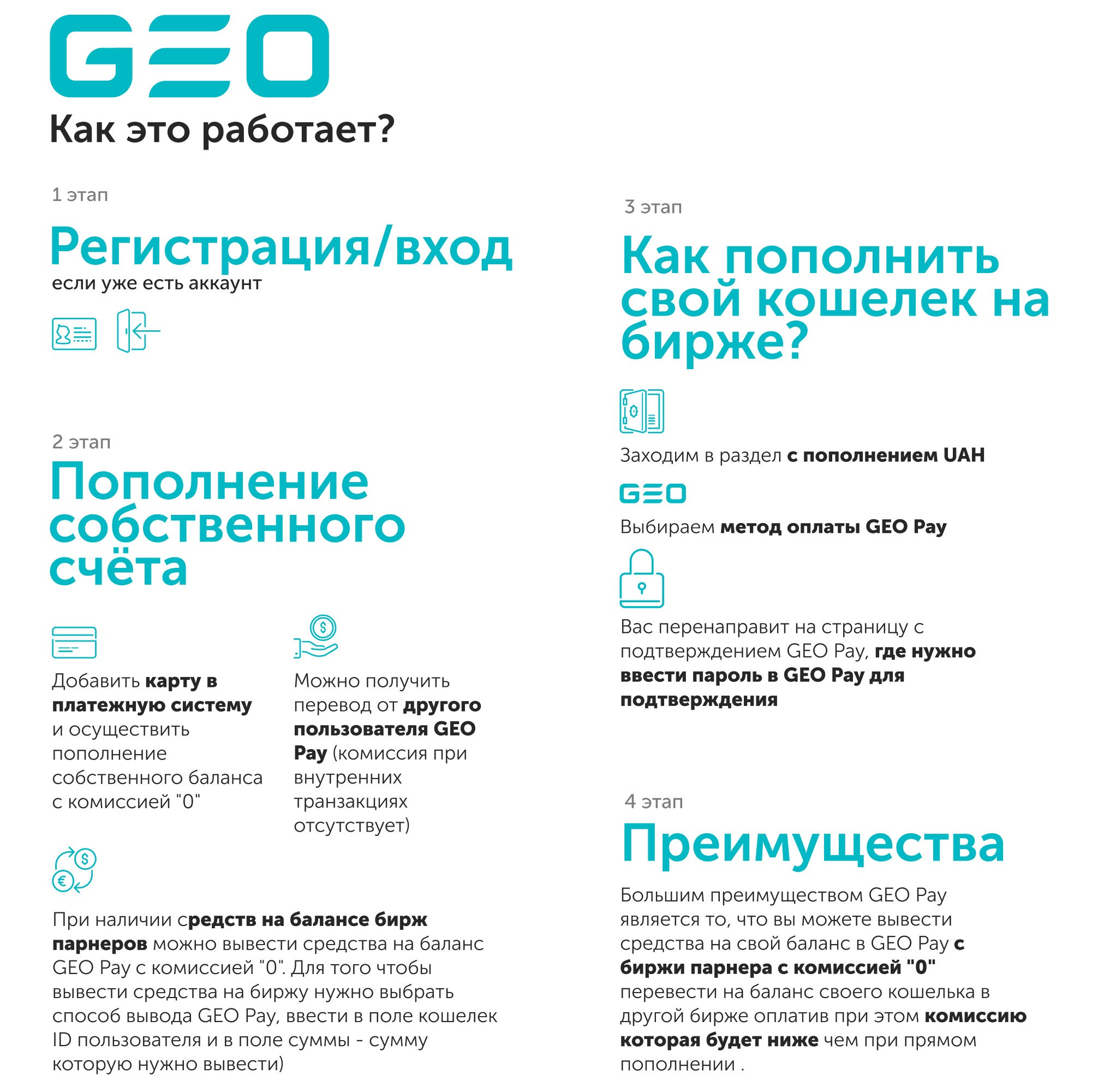Подробные видео инструкции работы GEO Pay c биржей на примере ОССЕ.ІО