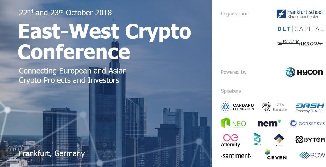 The East-West Crypto Conference (www.ewcc.io) will take place on October 22 and 23 and aims at building the bridge between the two largest blockchain ecosystems - Asia and Europe. Speakers include representatives from 5 out of the 20 cryptocurrencies with the highest market capitalization and 3 of the architects of the blockchain-friendly regulatory framework of Malta (Malta Blockchain Taskforce). The conference is organized, among others, by the Frankfurt School Blockchain Center and addresses the latest technology developments, the different ecosystems, investment trends and regulatory frameworks in both realms.