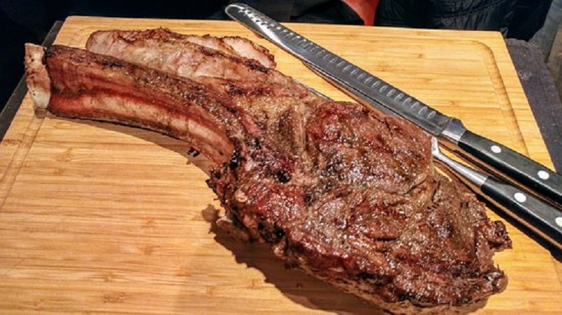 A single bone-in tomahawk steak costs 100$ ! OMG! Is that made of gold? In here, you can even get a full goat roasted in a plate for that price, man, NY is expensive yo!