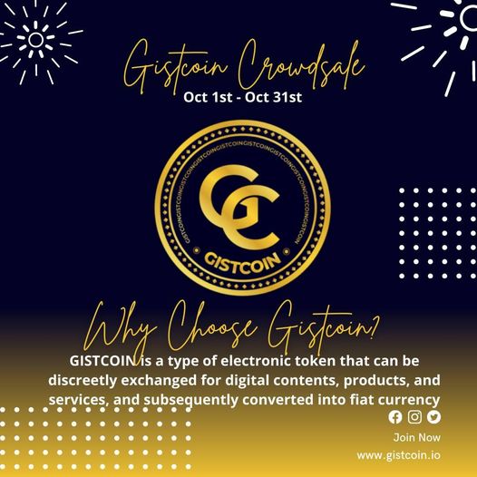 What more to say than to make you see WHY CHOOSE GISTCOIN?. It is cheap to buy when it is least sold at a less price than to buy when it is public sale at the initial listing. You can buy 1 bitcoin now anymore at the same price it got sold at launch. You know why? A lot of factors have contributed immensely to the increasing price of bitcoin. Better to make your plans when you can else you may not have another opportunity to do so.