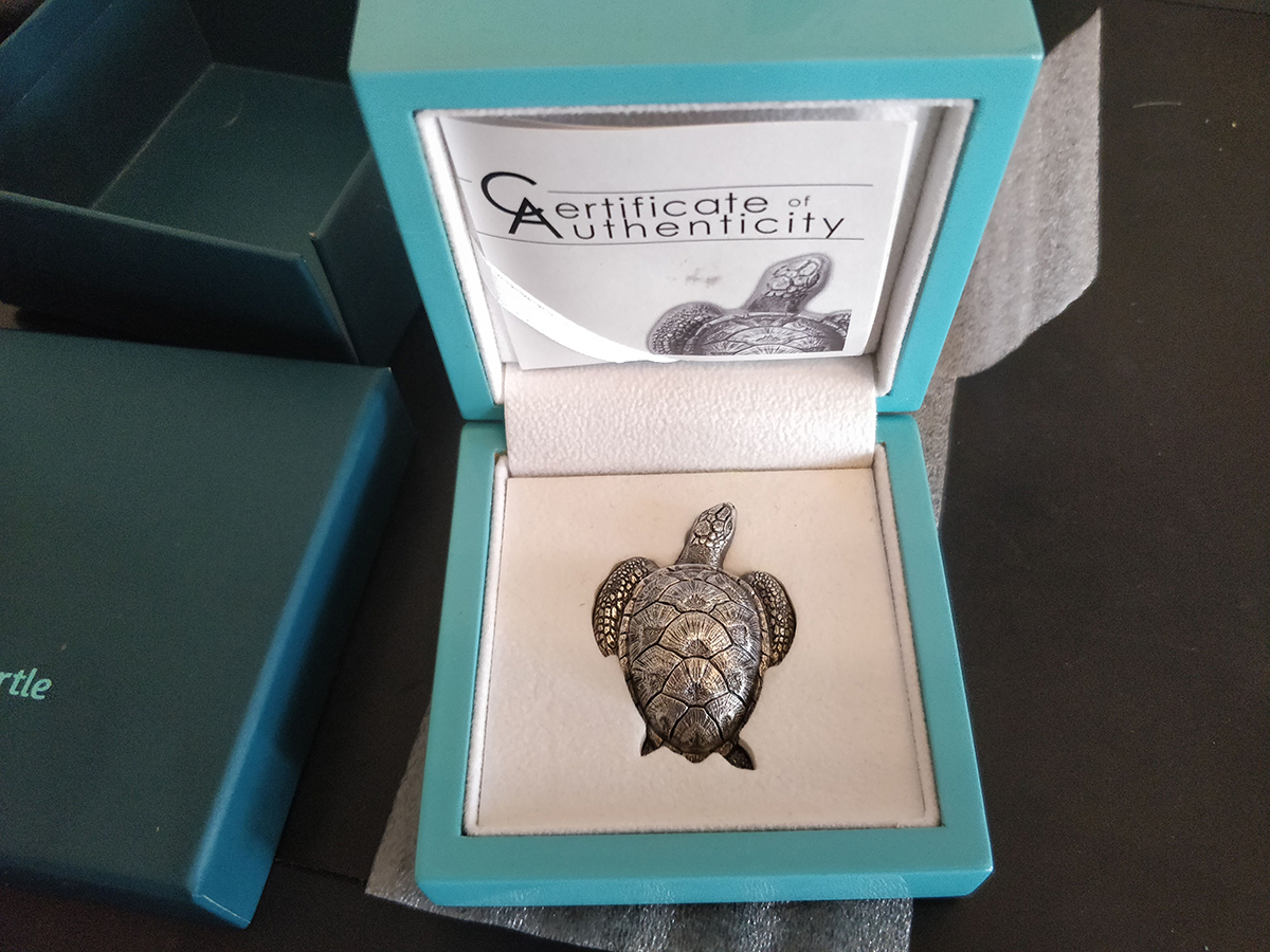 One of them is this beautiful silver coin in shape of a sea turtle. It is quite an extraordinary item and I would love to keep it for sure; but as it is, I have an exhibition bill to pay along with other expenses, so I have decided to offer it as a sacrifice to please the gods of rewards and crypto prices or in other words; it is going to be my anniversary giveaway this year.