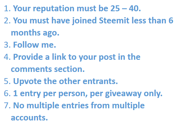 Most of us are new in steemit but we've managed to raise our reps above 40 though we're still struggling here. I think using amount of sp as condition for entry will be better because some of us have rep above 40 but our sp are below 100. So you have to consider us so that there'll be more participants in your contests. Thanks for the consideration.