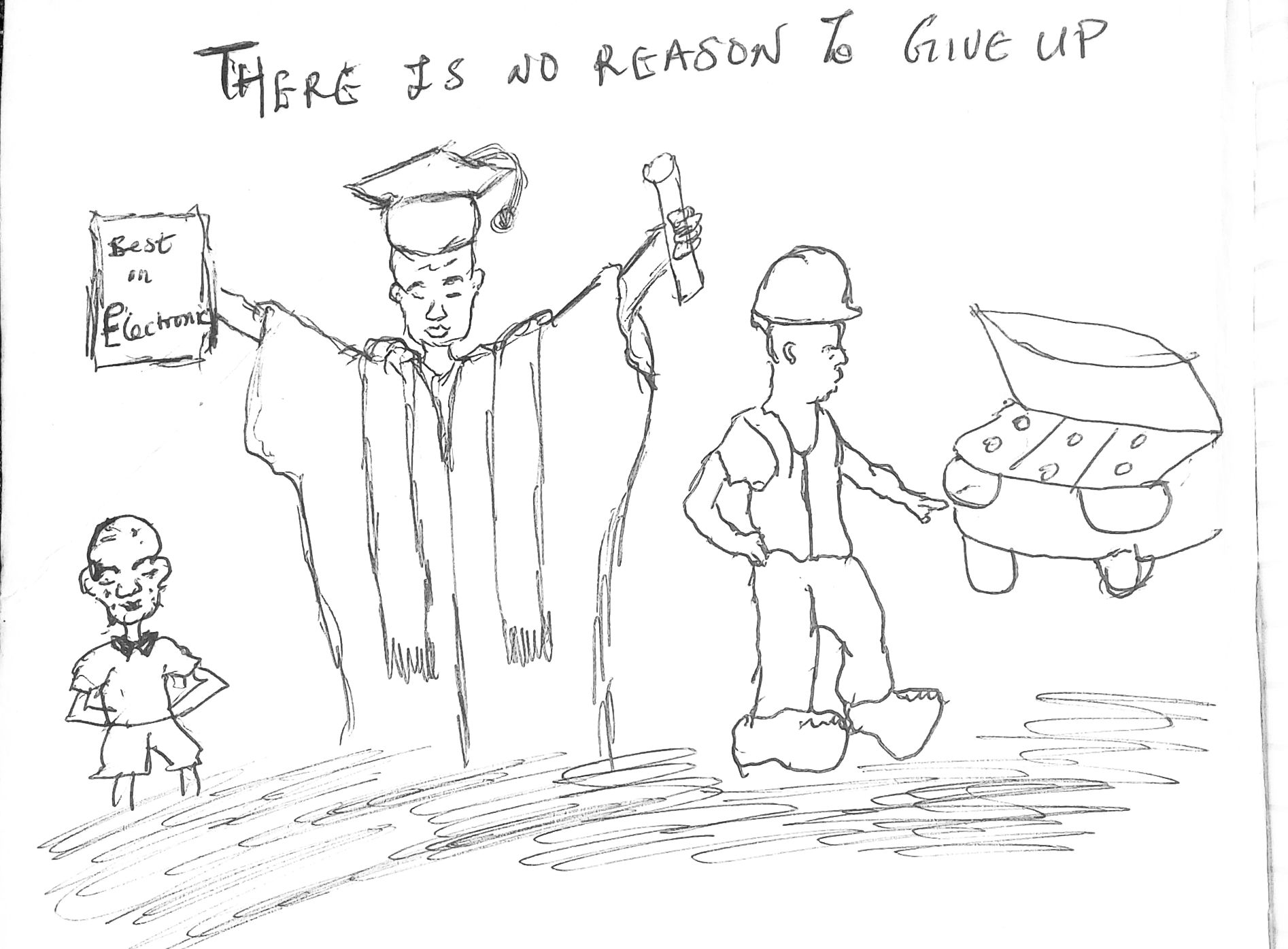 Every time i feel like giving up I think about the beginning how I started, I was anxious, I wanted to prove my environment wrong that I am not a failure. I graduated as the best student in physics with electronics with prizes which was a surprise to my family. Am currently working as an intern procurement engineer in a steel company hoping to push my academic career.