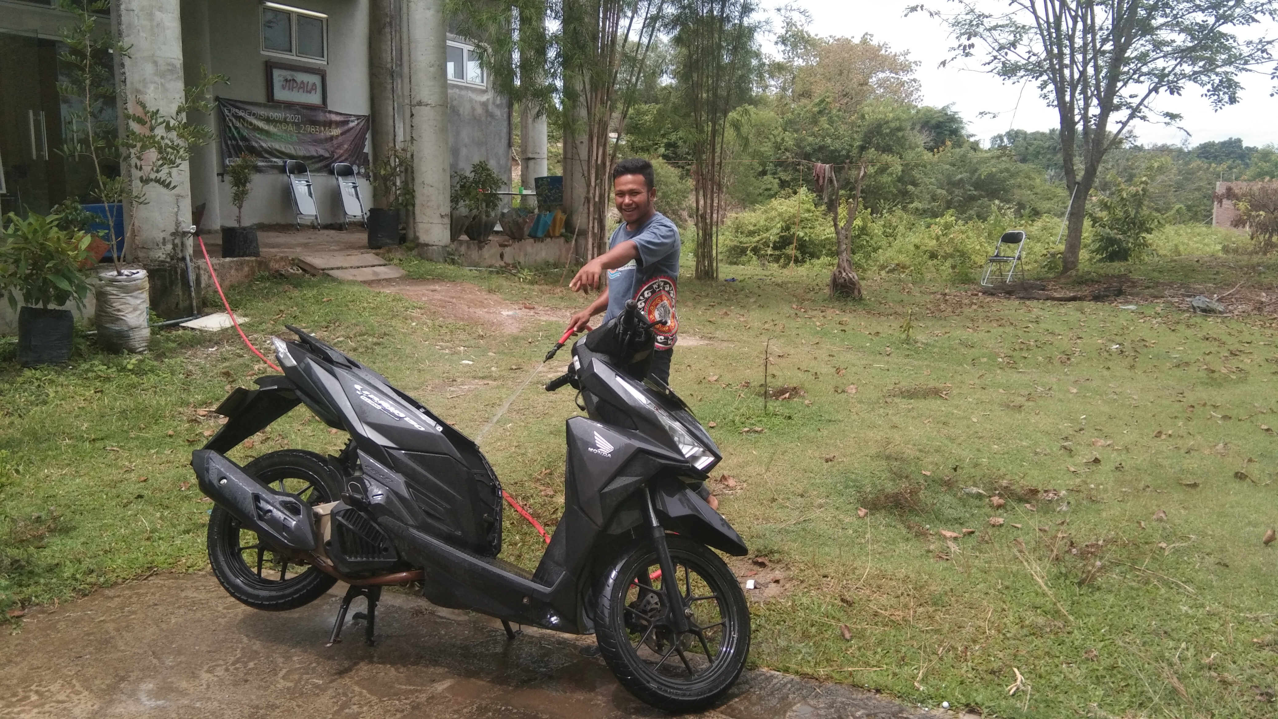 I saw when he came home from his garden that his motorbike was always dirty, then I asked why it was always like that and he replied that it was because of the unfavorable weather conditions such as rain that hindered and caused his motorbike to get dirty.