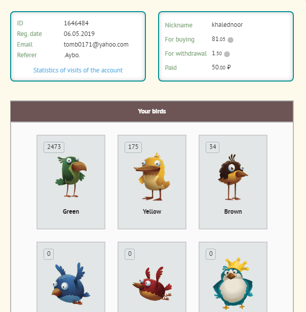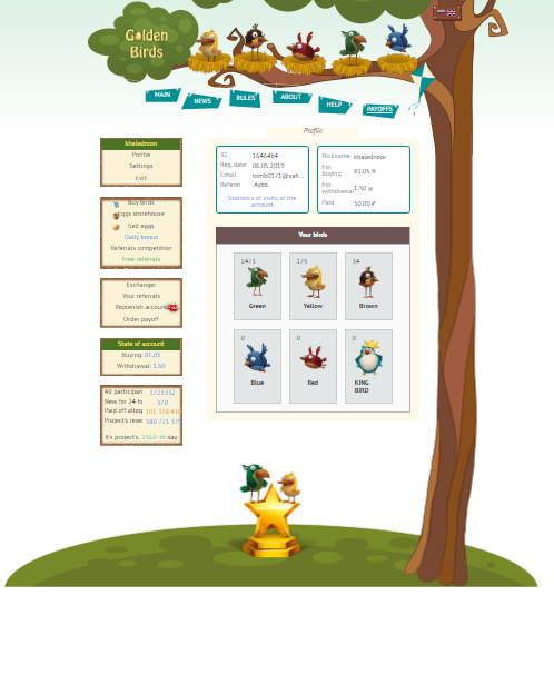 golden birdstomb0171 (45)in #golden • 6 years ago (edited) Invite your friends and acquaintances to the game, you will receive 30% ON BALANCE FOR WITHDRAWAL http://golden-birds.biz/?i=1646484 #birds #goldcoin #earning