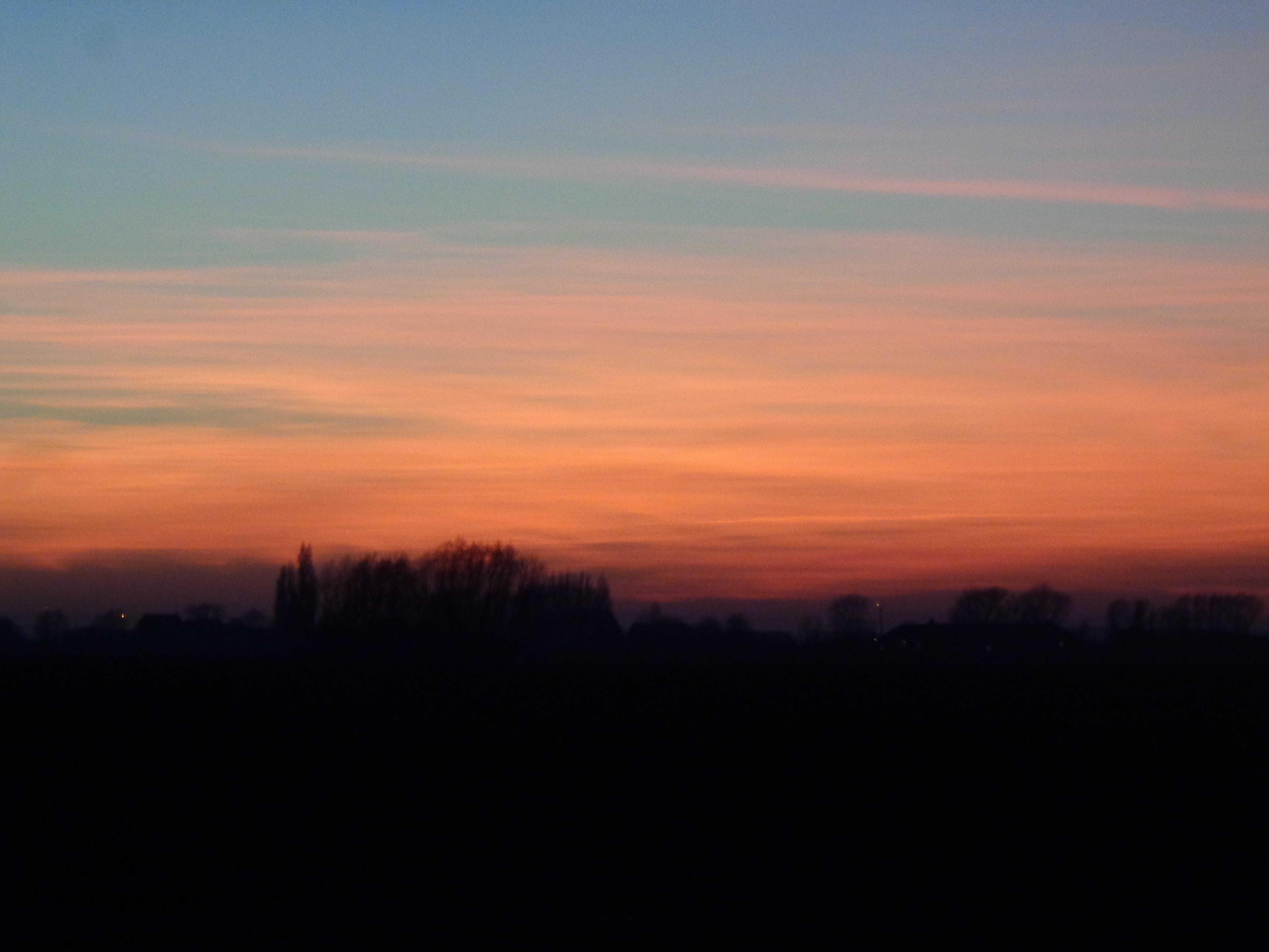 The last sunbeams of the sunset in combination with a little sea of 'cirrus' clouds in the far distance created a colorful glowing sky that was worth taking a a few pictures of ;