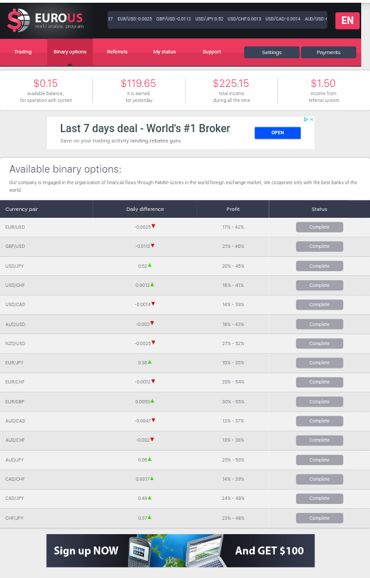 Sign up using the link below and get a reward of $ 100. Get a net profit of $ 30 a day with new deals.