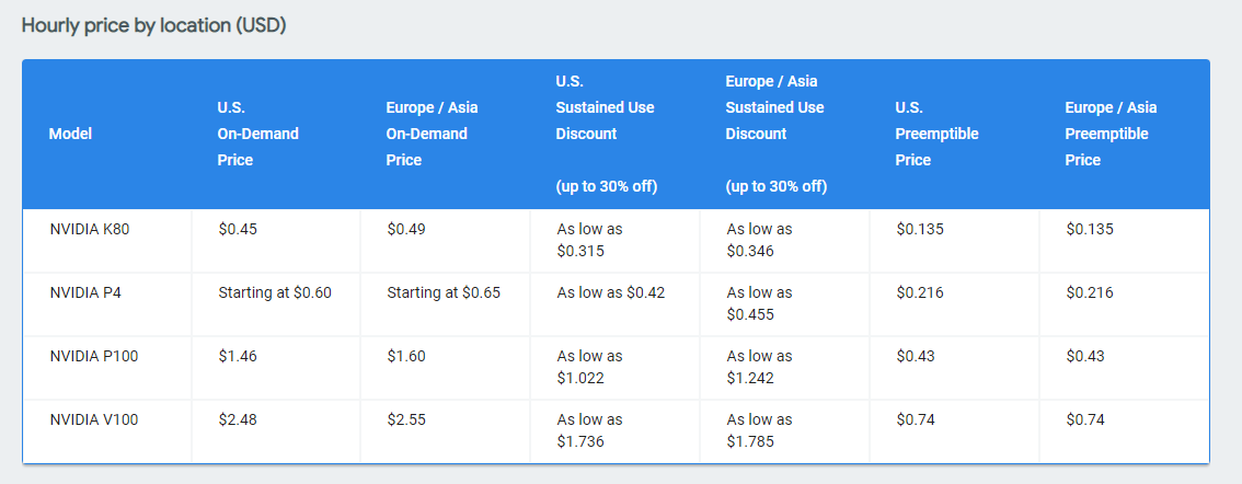 Cloud computing service providers are “racing to invest in GPU-enabled virtual machines”. The reason is that the increasing adoption of AI creates an ever-increasing need for high-fidelity GPU based computing power and what space can offer as of right now is expensive, very expensive.