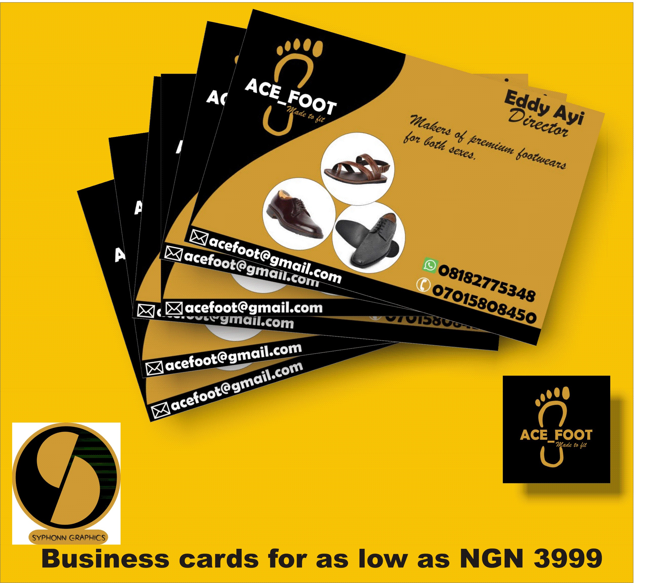 Acefoot is the business name and he makes quality shoes.