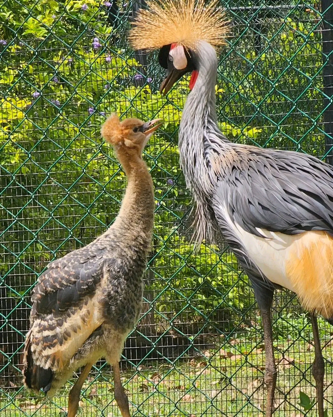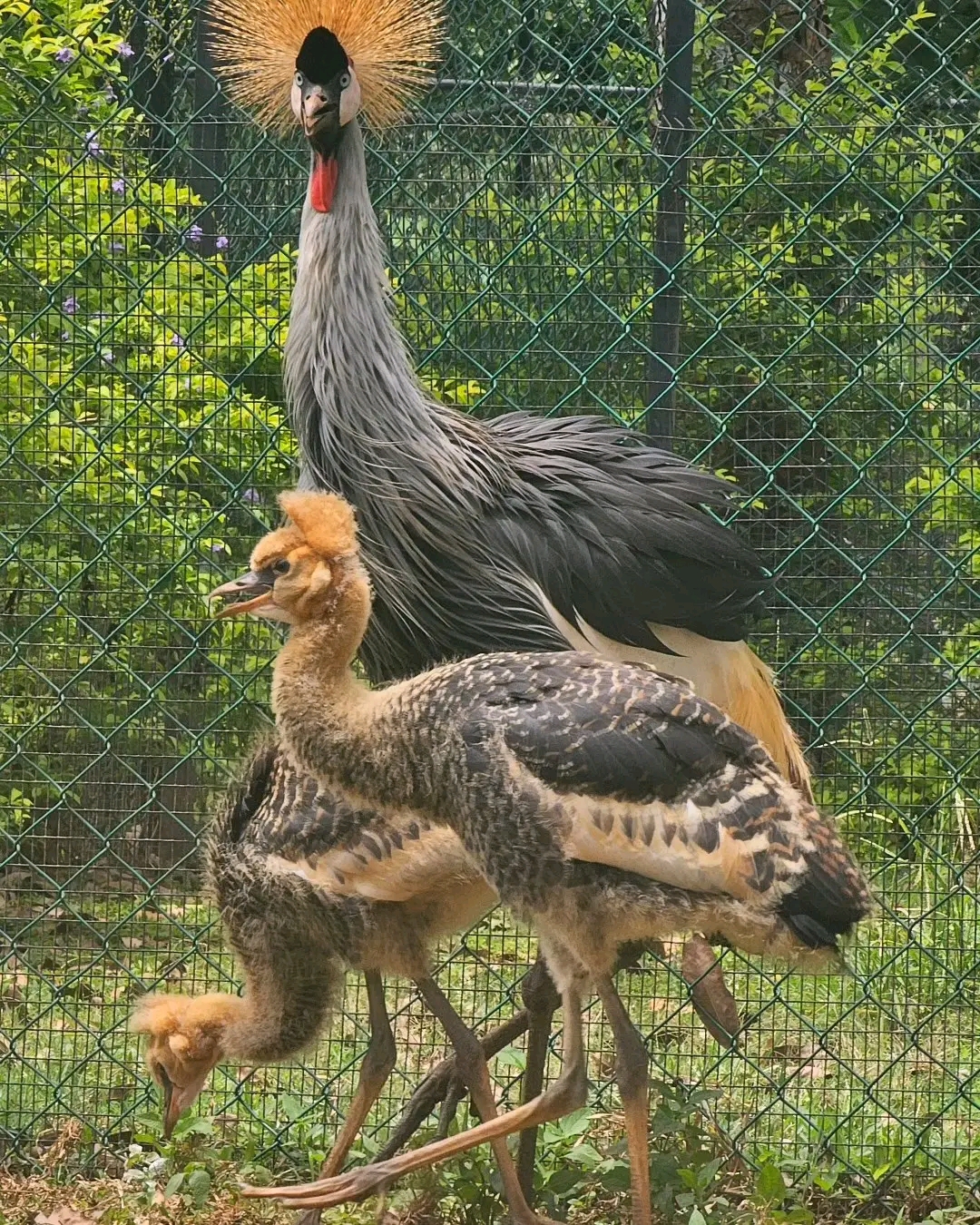 Our 45-day-old Gray Crowned Crane chicks are happily growing up alongside their parents here at Birds Park Hambantota. 🐥🕊️ It's such a joy to watch them explore their surroundings and learn from their elegant mom and dad!🥰
