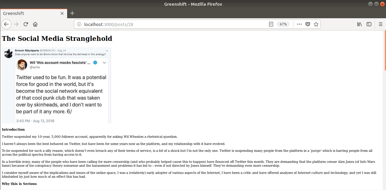 We now get images to render, we have headers showing up, and the text is now split up into different paragraphs. Granted it doesn't look super sexy, it is solid HTML which we can add some spicy styling to in the future. The nice thing about this library is that it creates the tags which we can now specify in later Javascript and CSS to make the page more dynamic and stylish.