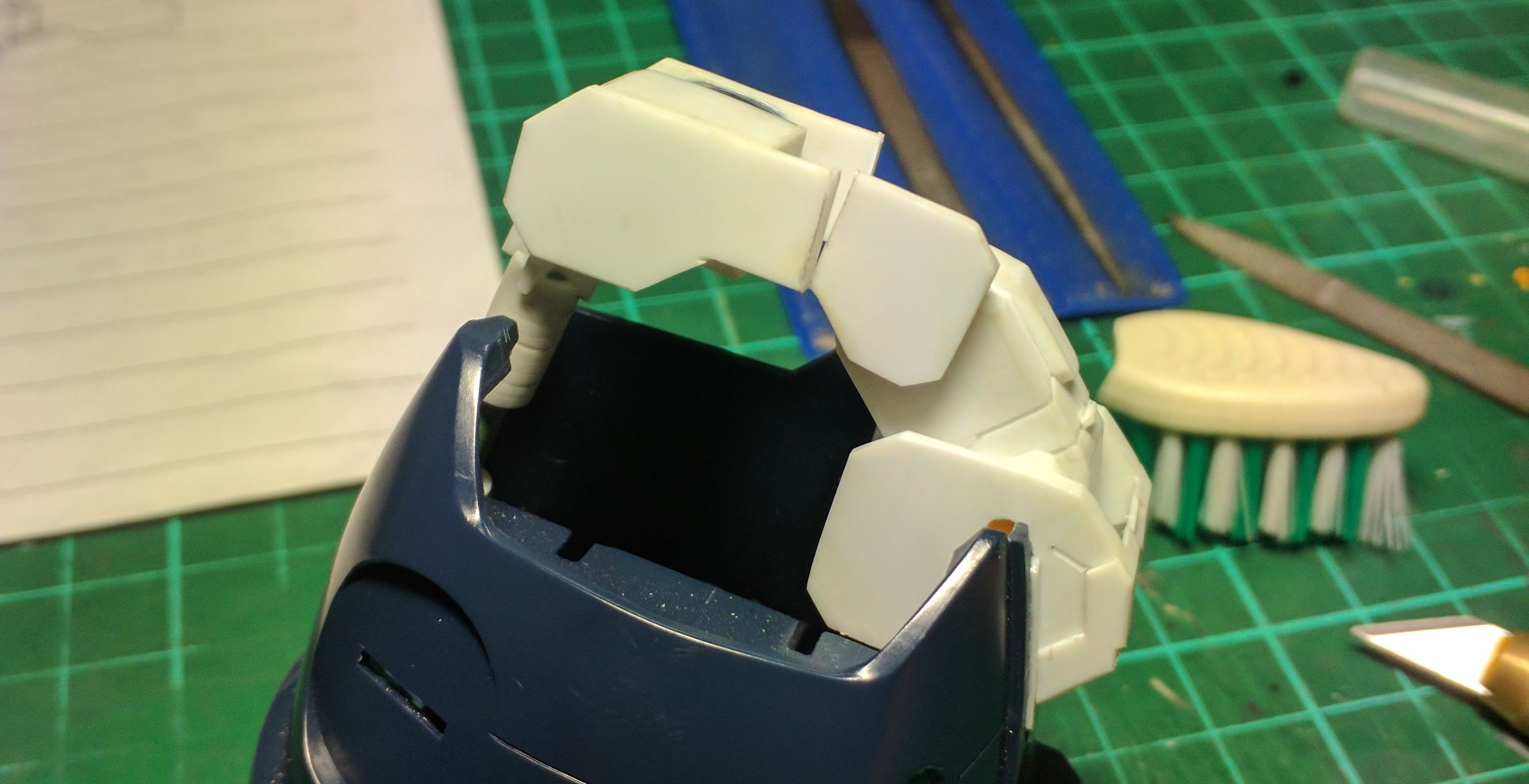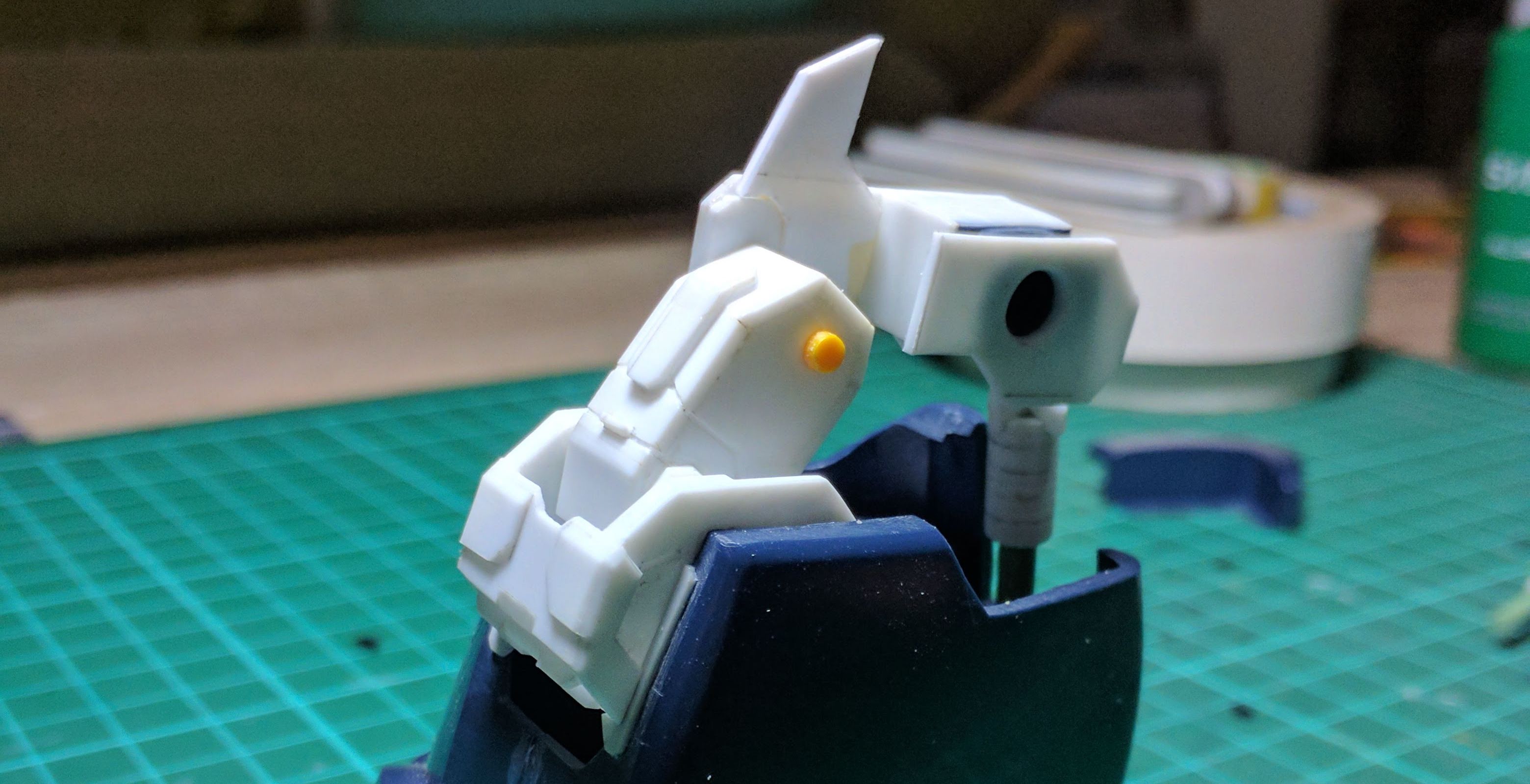 - Fixing broken peg using gunpla runer and several tools.
