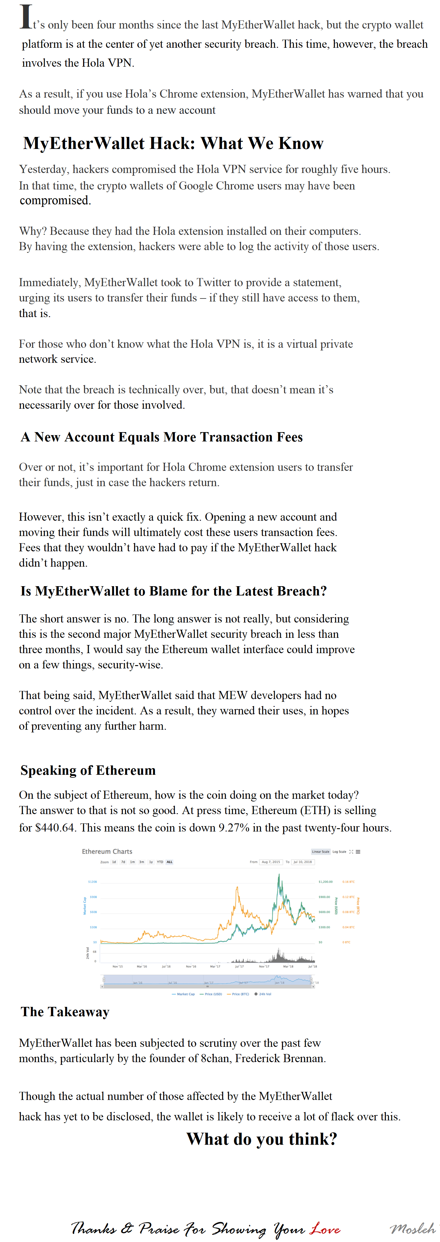 Victims of the Latest MyEtherWallet Hack: Hola VPN UserssteemCreated with Sketch.mosleh (29)in #hack • 8 years ago #vpn #ether #wallet #blockchain